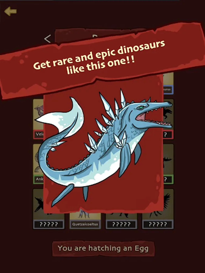 Dive into a deep and incredible jurassic world made into a clicker & collection game. Many creatures inhabit this place, from common ones to their most epic evolutions and never seen before creatures! And as we all know, a dino is born when an egg hatches so… get ready for the fun and to have an incredible collection of creatures!