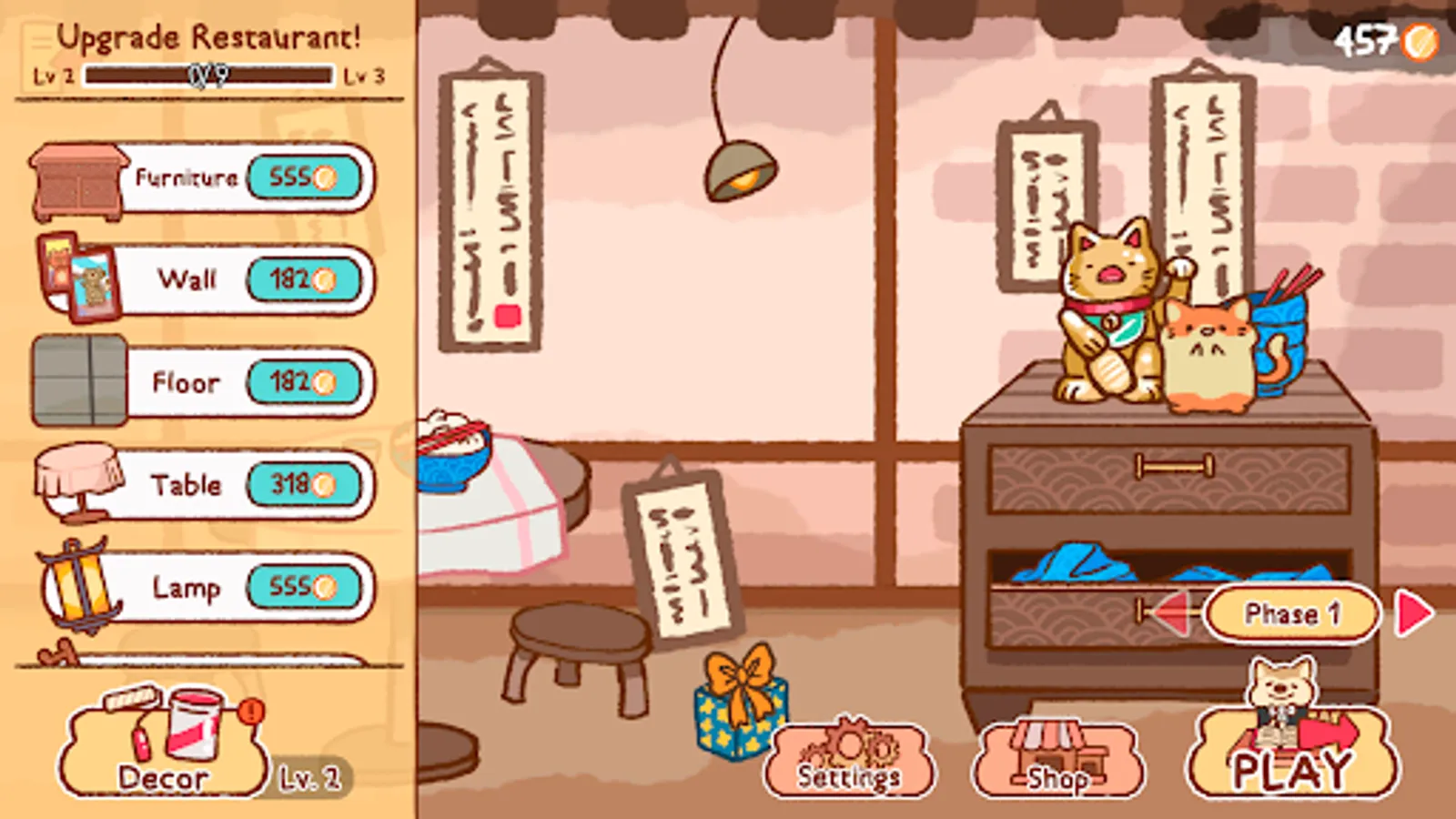 With all the money you earn, you will be able to upgrade the restaurant. You will go from a simple, yet very pleasant decoration, to a true 5-star restaurant. The more you improve your restaurant, the more customers will come to try your menu, so keep an eye out for new customers.