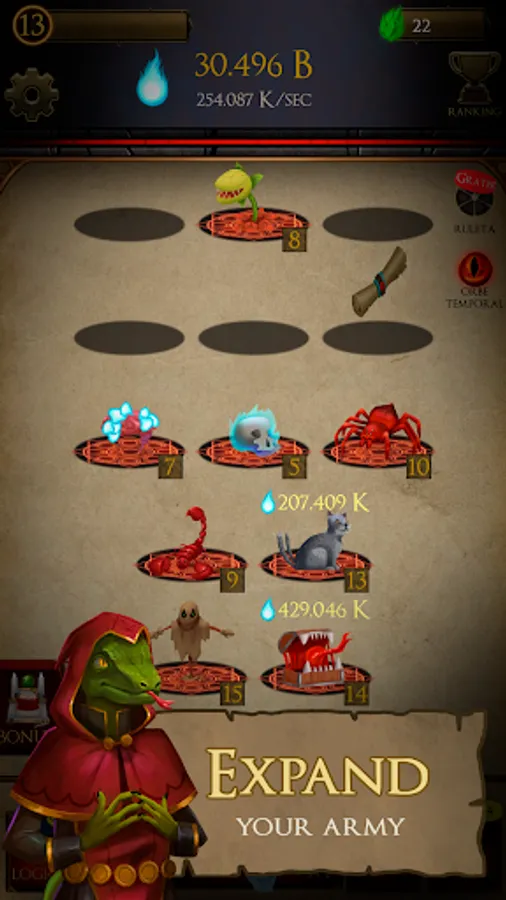 Upgrade your mythology creatures to discover new and more powerful beings.