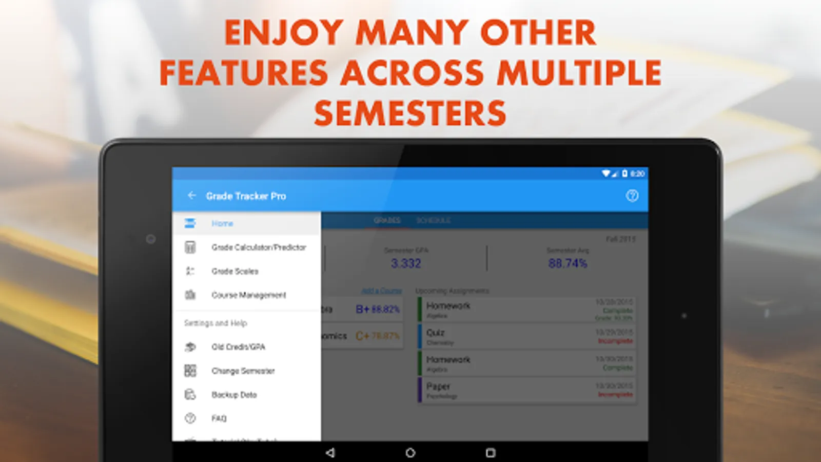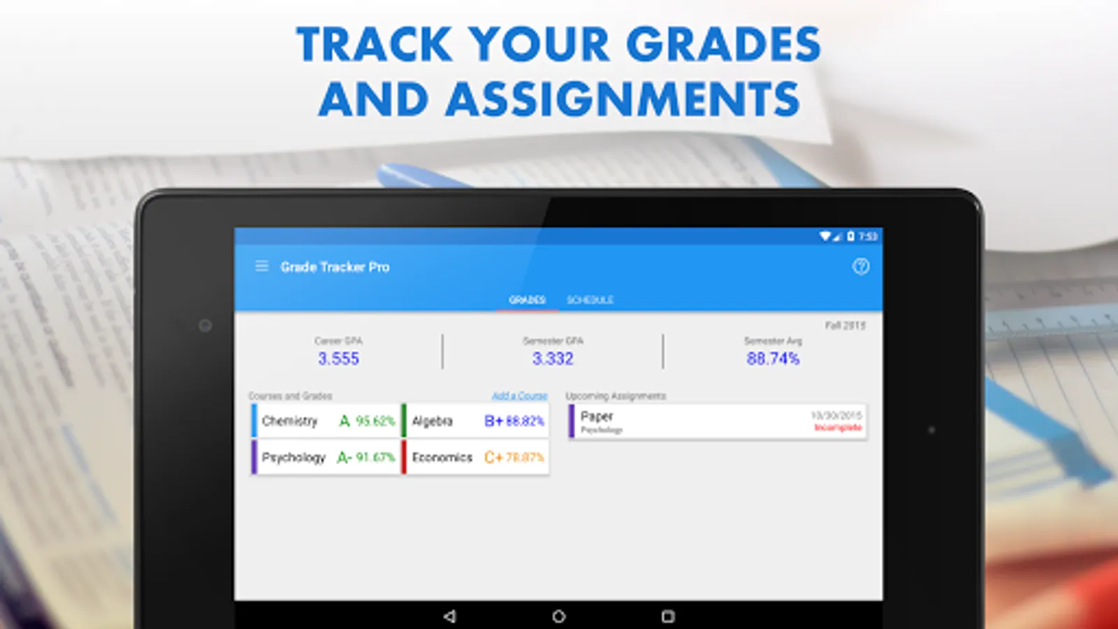 Grade Tracker Pro has grown from a simple grade calculator into a complete school management solution and organizer. Whether you need class scheduling, quick and simple grade entry, or complex grade management and assignment tracking, this app has your back. Perfect for high school and college/university students!