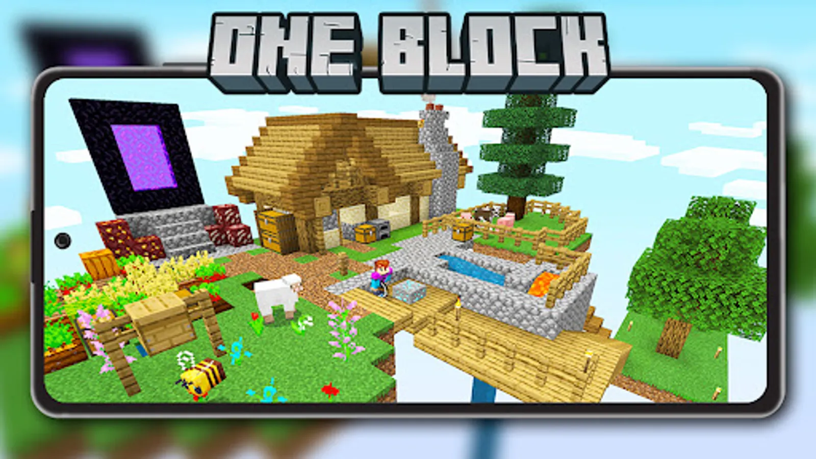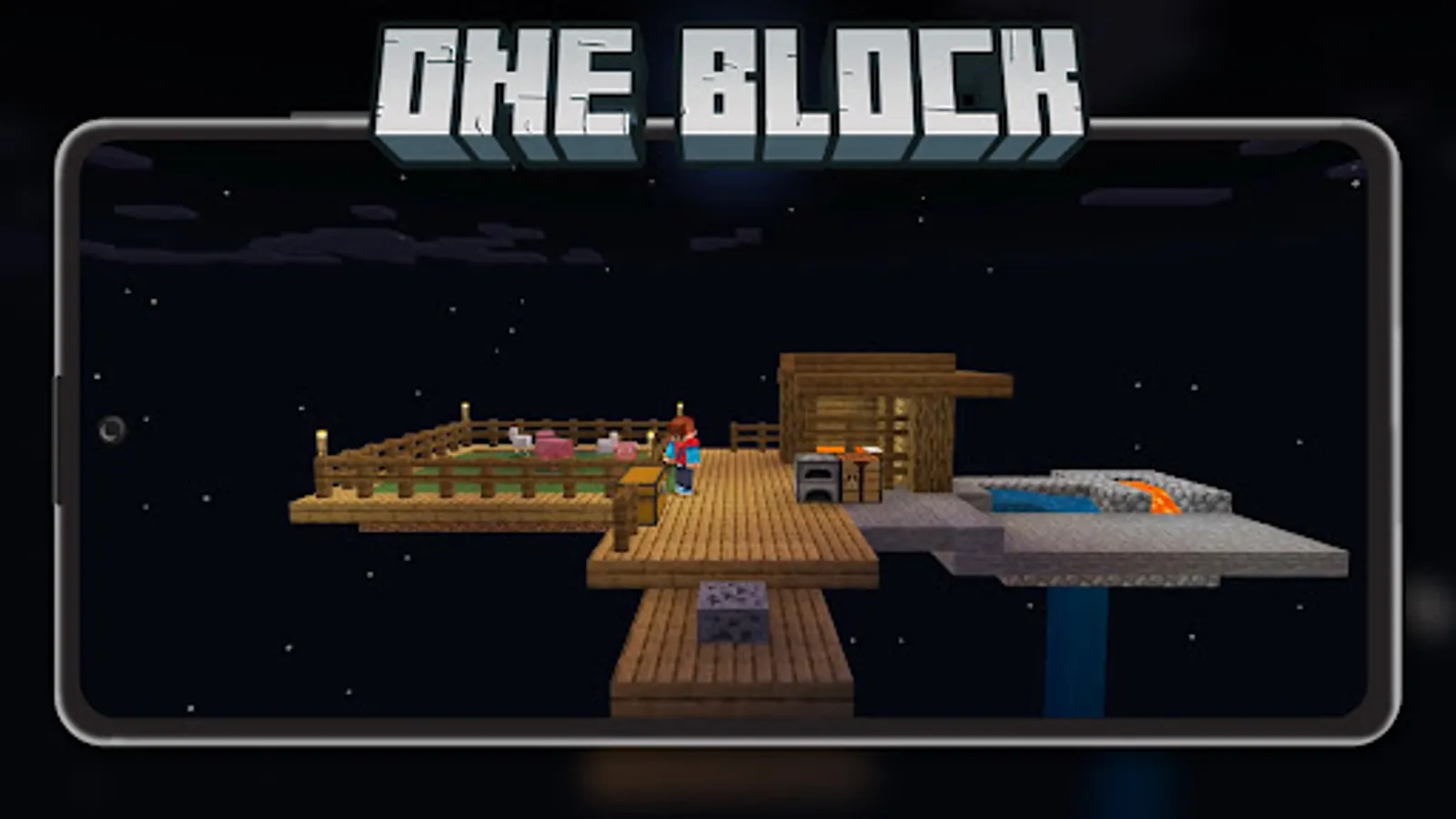 Collection of MCPE One Block Skyblock Lucky Block mod addon and world for Minecraft PE (Mobile Version) with automatic installation into the game.