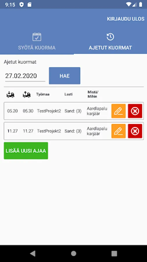With the KippiApp application, a civil engineer and an earthmoving company can quickly and reliably record work sites, loads and hours on a daily basis. With the application, you can easily clarify and harmonize consignment notes into digital format. The electronic system makes it easy to search for loads and get summaries using different filters. For example, you can narrow the data by destination, person, car, or variety. You can apply for billing hours per employee and contracts for daily or even weekly billing.