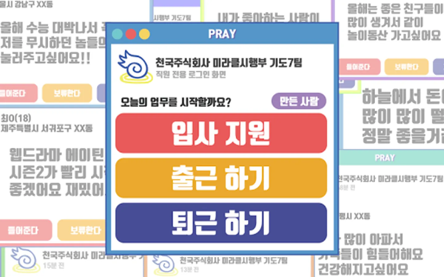 The department I was assigned to was the Miracle Ministry Prayer 7 Team, the prayers of the people on earth