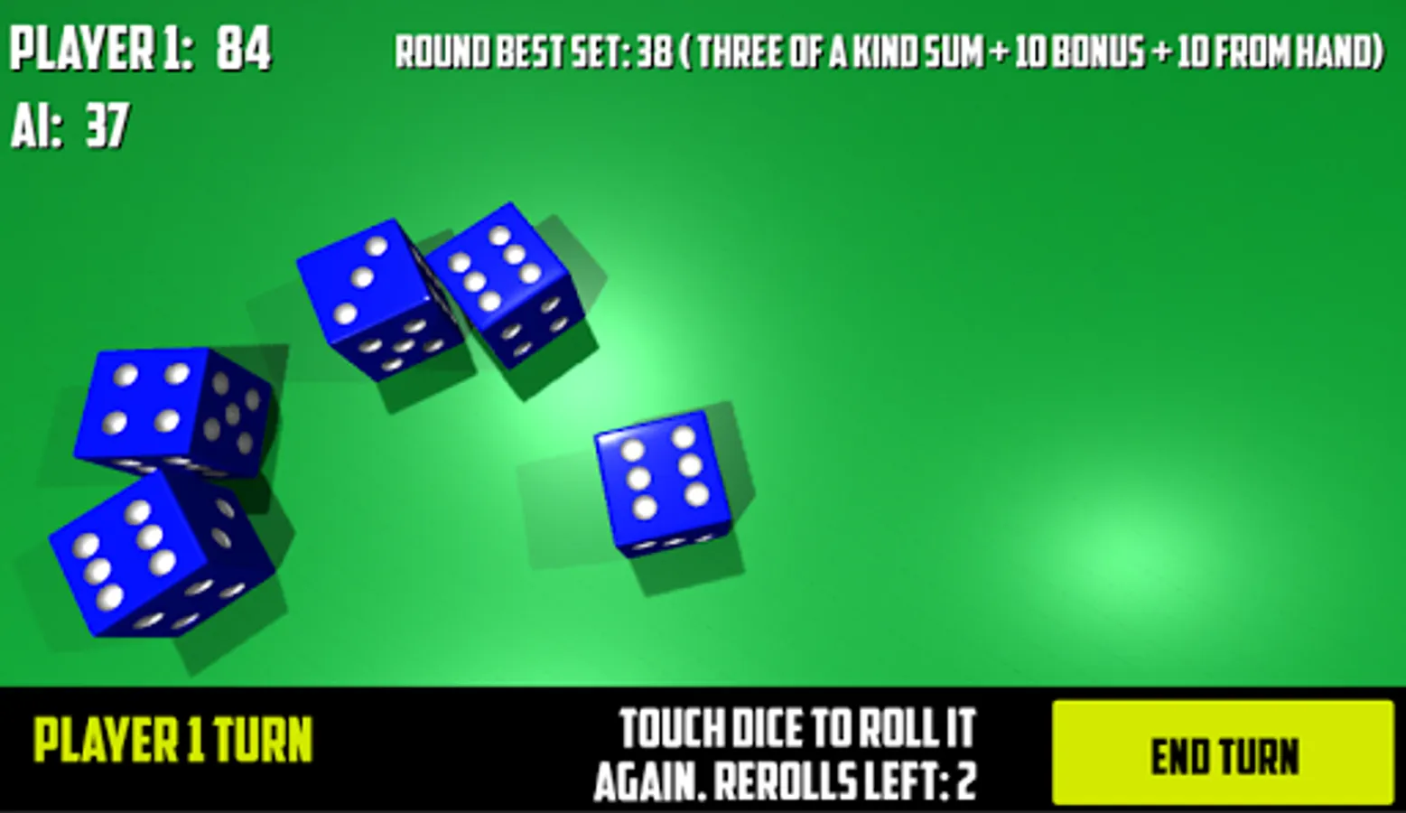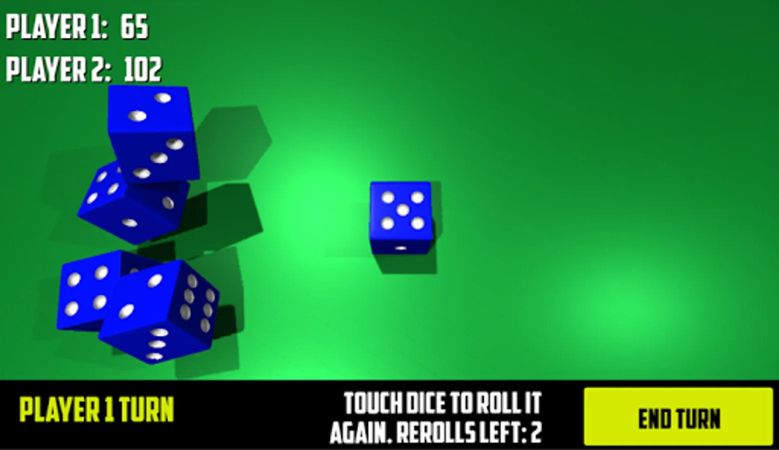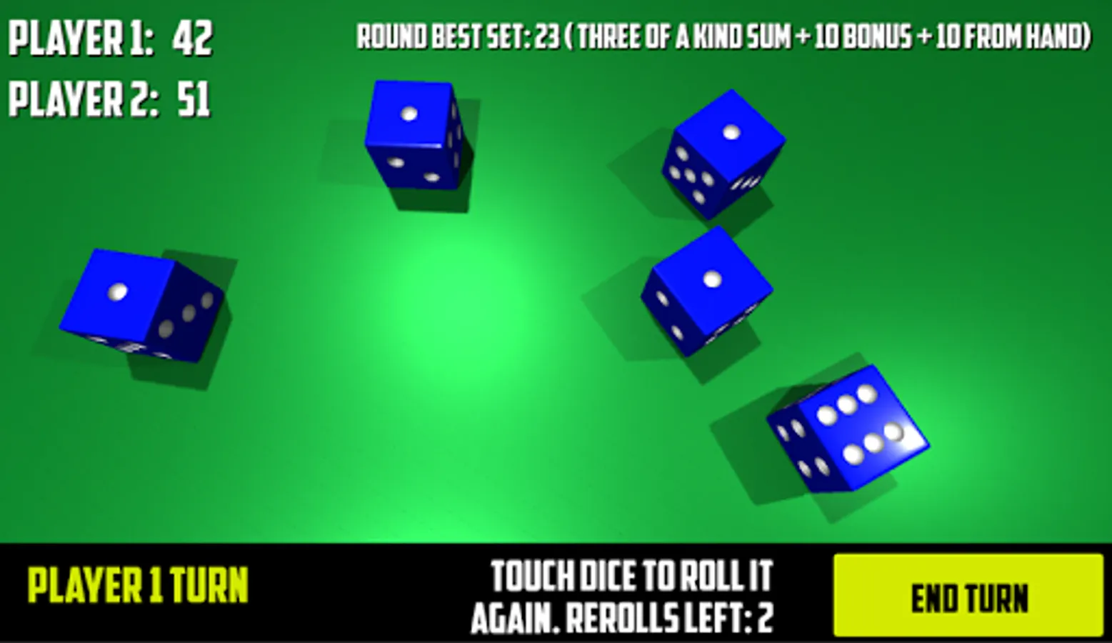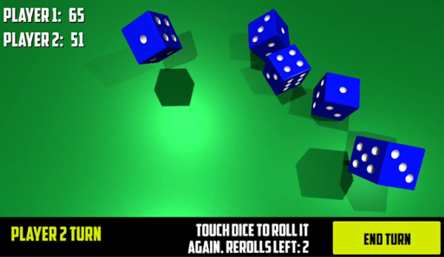 Dice Game with real-time physic simulation for 1 or 2 players (on one device).
