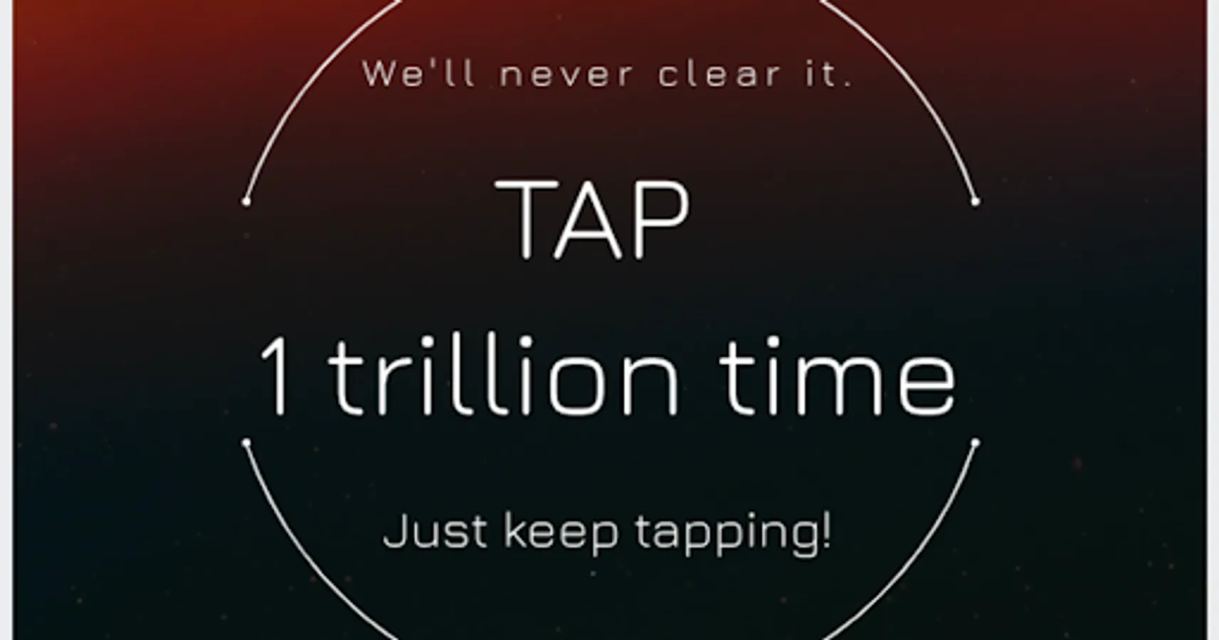 In the game of just a trillion taps, your taps could determine the future. This easy game is full of surprises and adventure! Download it and try to tap a trillion times on your own. Whether you save the world or destroy it is up to you.
