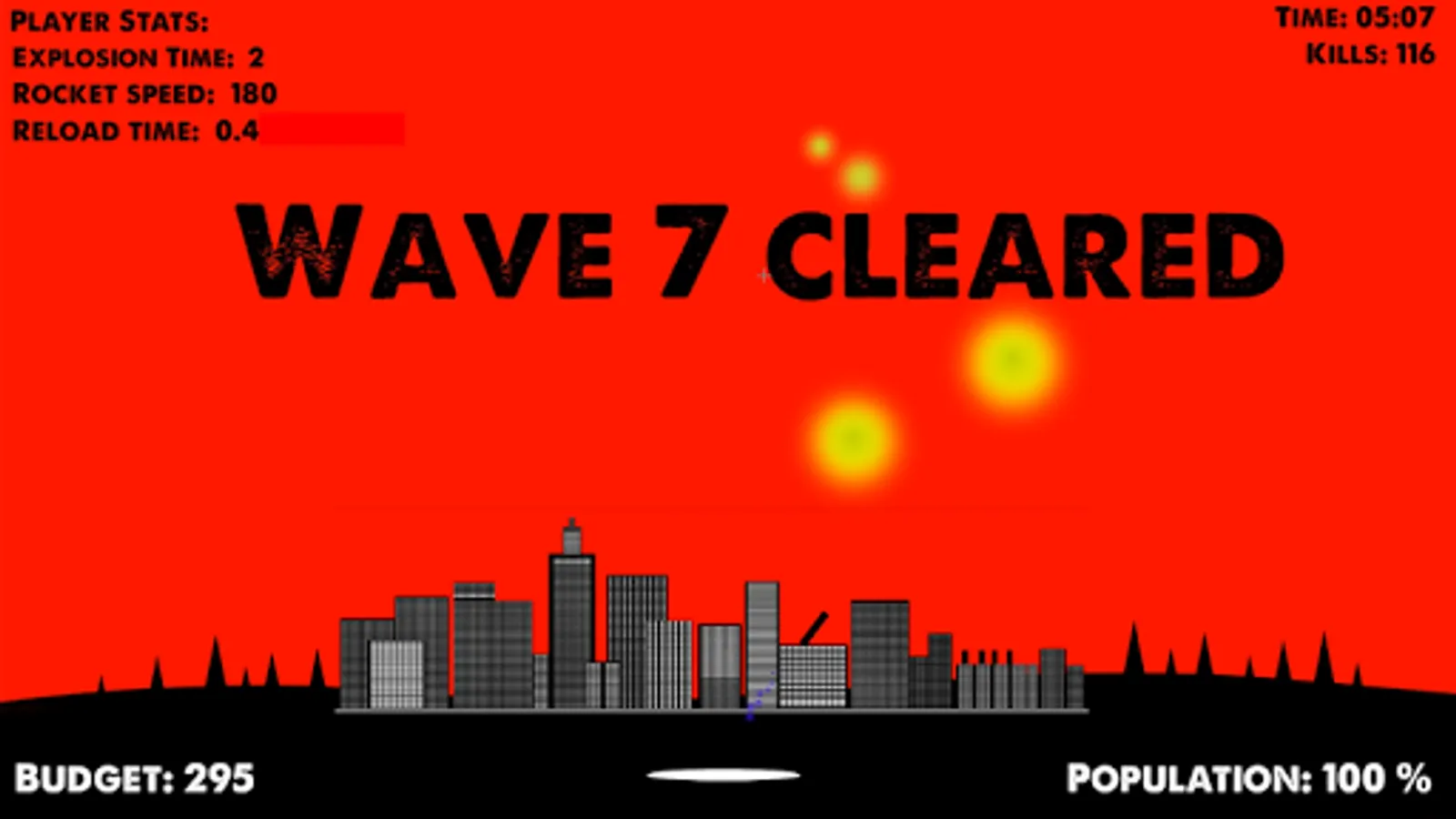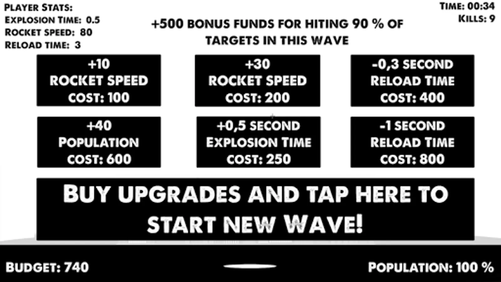 4) Upgrade your base after each wave to increase Reload, Speed and Blast time