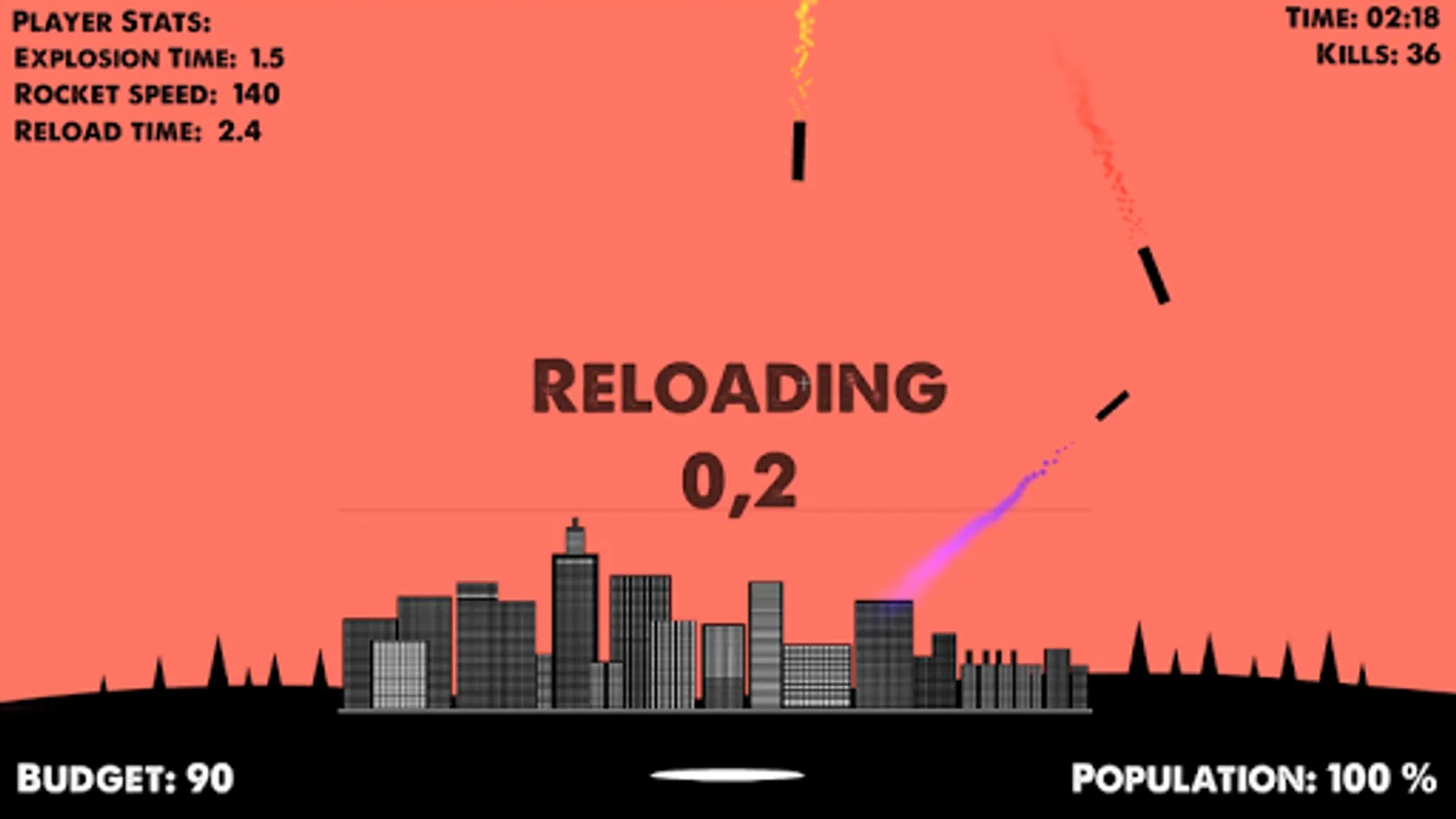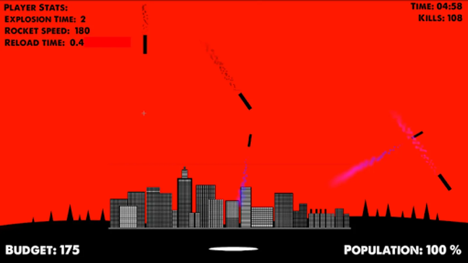 3) Control your budget (+20 for hiting enemy rocket, -5 for launching your rockets)