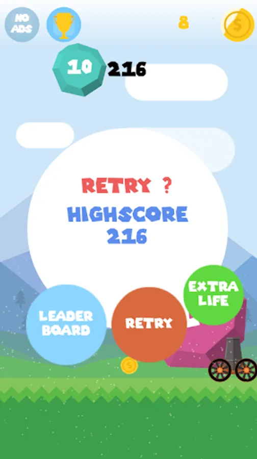 - Try to shoot the balloons coming from above and bouncing below by dragging the cannon left and right on the screen.