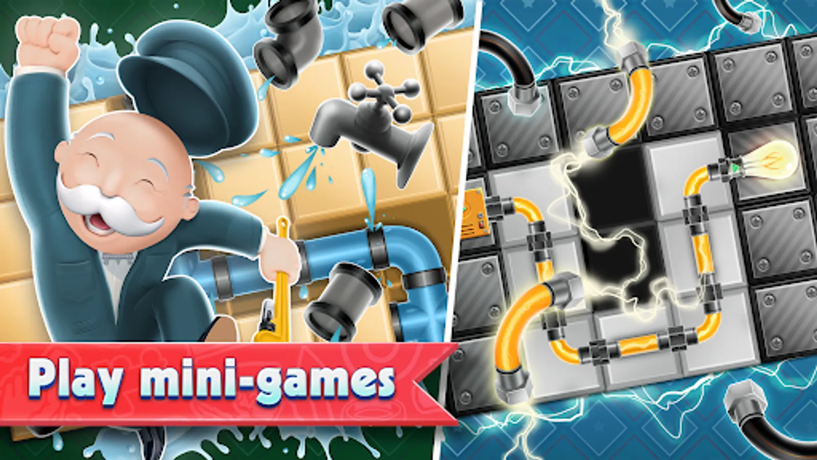 This is a MONOPOLY game, and true to its name it gives you the opportunity to buy properties and populate them with a wide variety of buildings: houses, hotels, even businesses! Follow Mr. MONOPOLY’s advice, make wise investments, build the city, and generate ever more rent in the process.