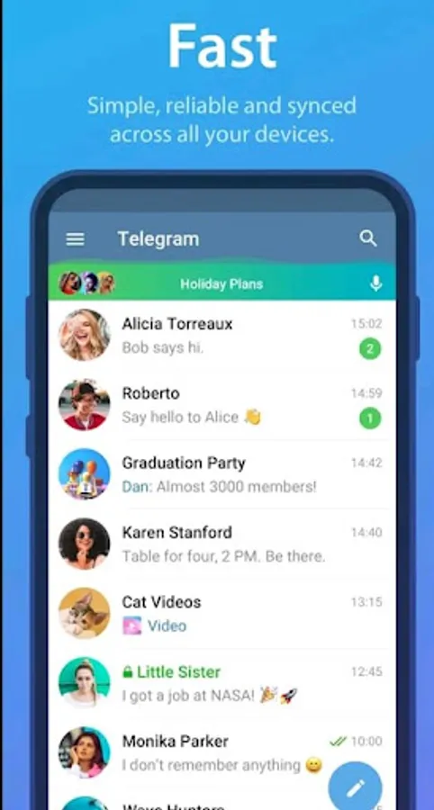 FAST: The fastest messaging app on the market, connecting people via a unique, distributed network of data centers around the globe.