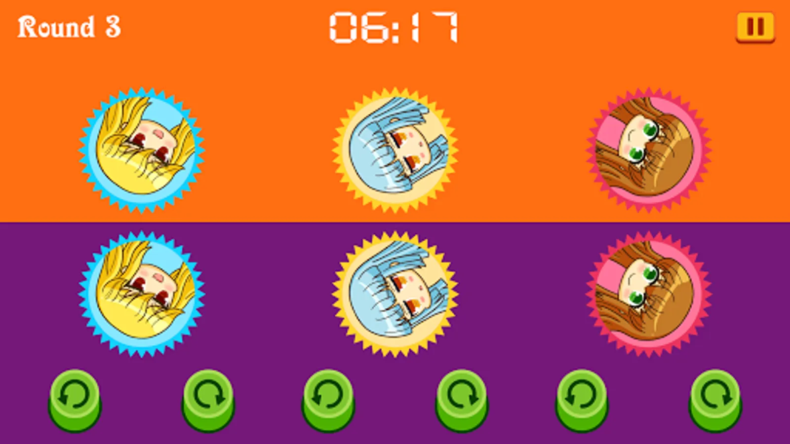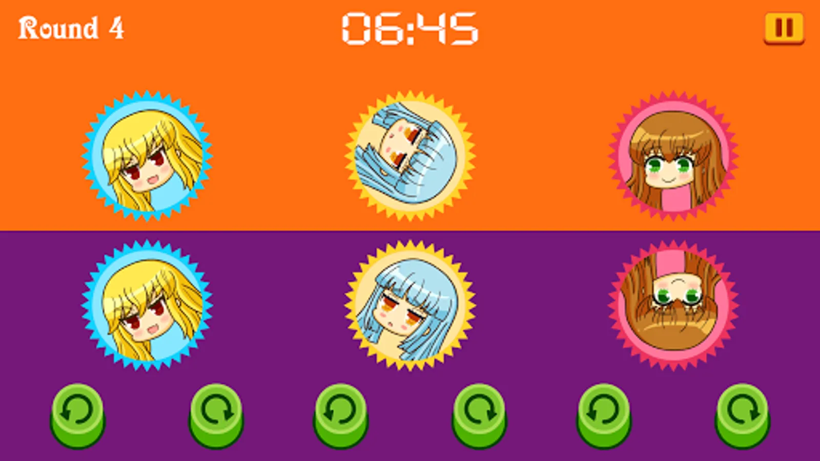 Put your game face on, because it’s time to “Face Off”. In each round, there are 3 character icons at the top and 3 character icons at the bottom. Your goal in each round is to rotate the character icons at the bottom to make their orientation match the ones at the top, all within the time limit. Sounds simple, right?