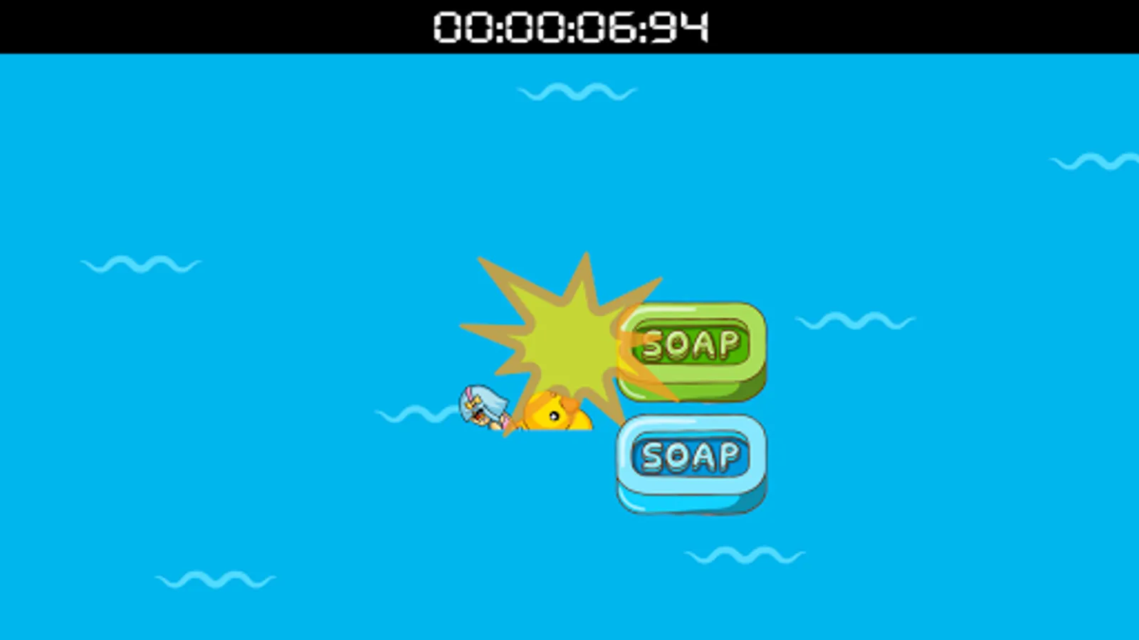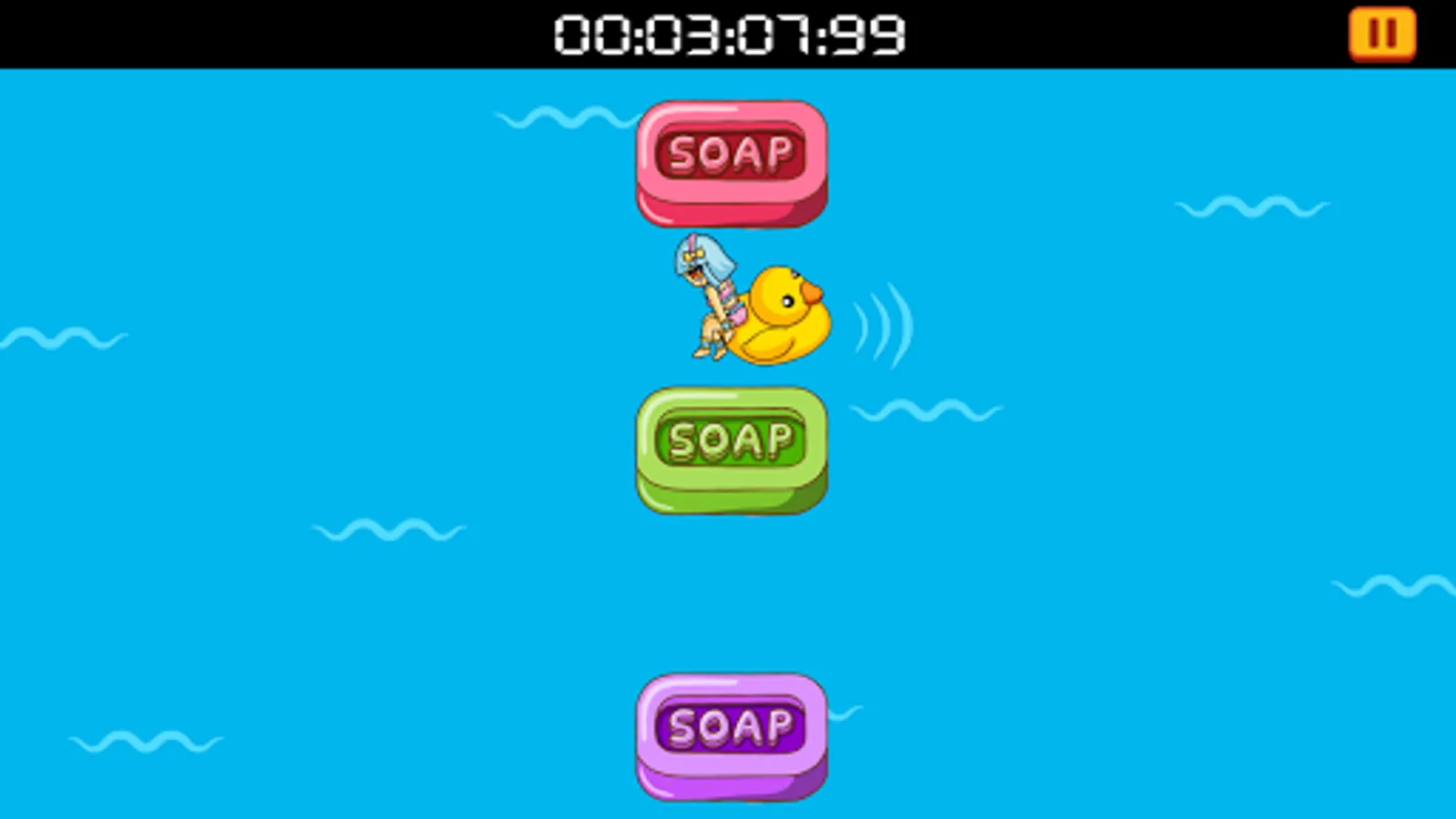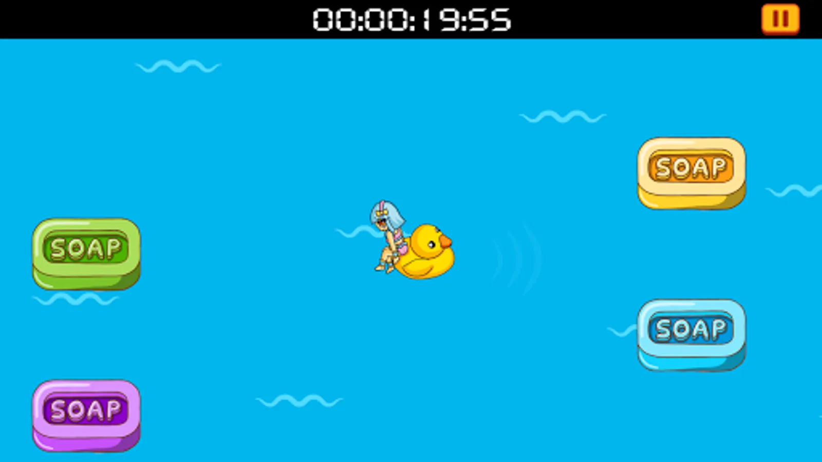 • Last as long as you can without sinking in this endless game. If any soap bars hit the rubber duck carrying Mimi, it’s game over. The colors of the soap bars are purely visual and do not affect gameplay.