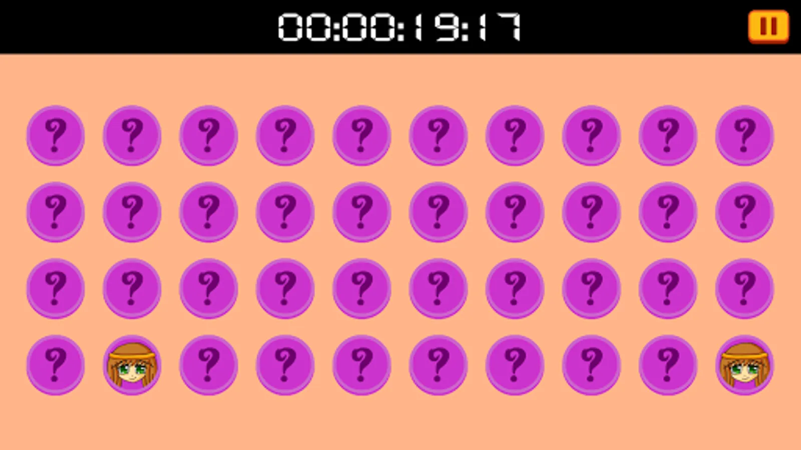 • Clear the board of all 40 icons in the shortest time possible. Please don’t cheat; try to test your own memory and eyesight.