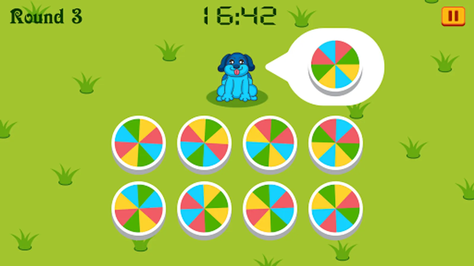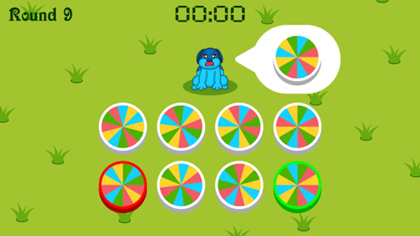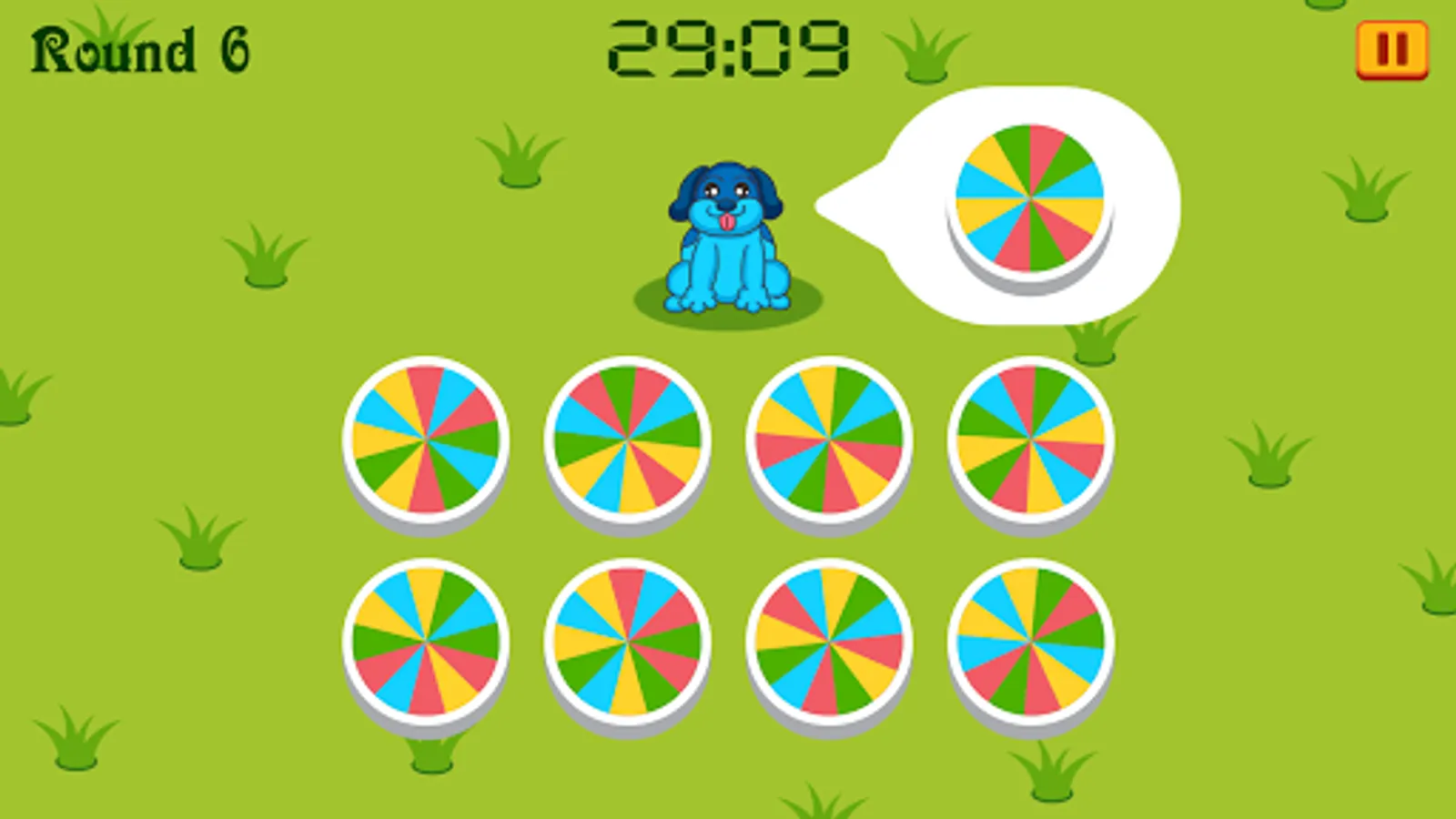 • The spin direction and speed of the discs do not matter. The important thing is their color pattern. The patterns get more complicated in harder rounds. Help the dog get through as many rounds as you can.
