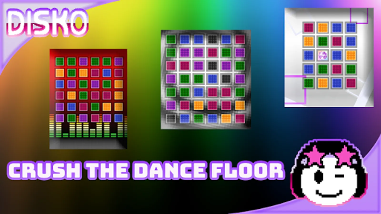 Our hero Diskobot wants to mix 90's upbeat disco tracks with crazy 20's mobile puzzle game.