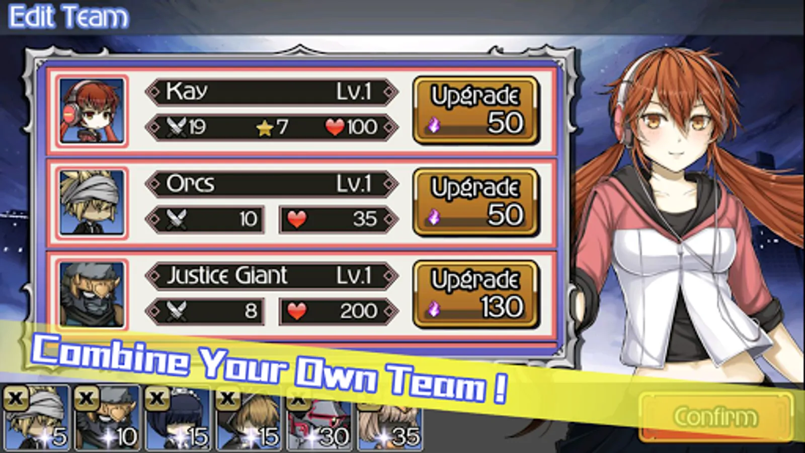 Over 11 characters become your companion. Collect, unlock, upgrade your companion and support items to become the Strongest team!