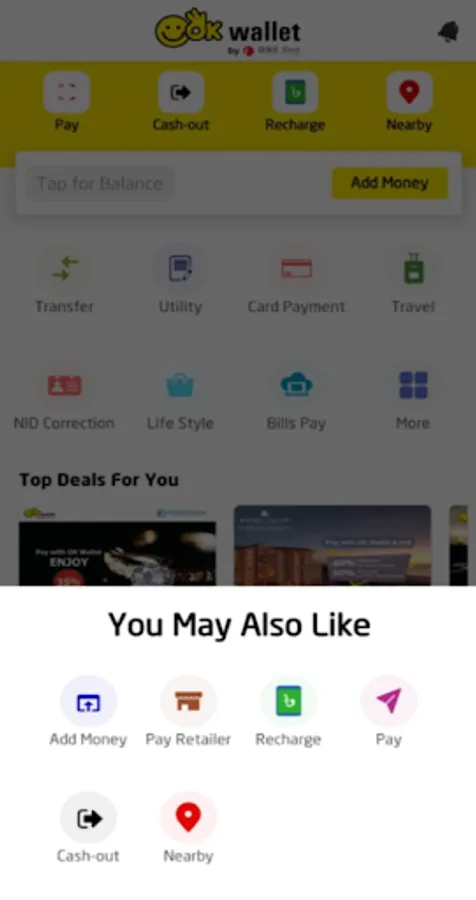 Comprehensive menu of “OK Wallet” provides convenient access to financial services.
