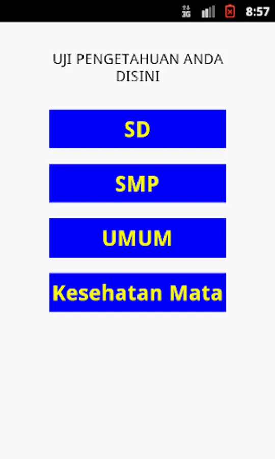 In game Knowledge is equipped with several levels of testing (elementary, middle, and General), the form of questions with multiple choice answers, analysis questions with reference answers, not only that in this game there is a test of eye health (blind test color) for test / detect eye health.