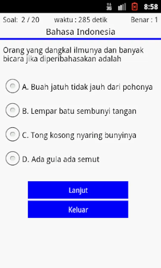 In answering each question required accuracy, precision and speed, because in every selection of test / test level you are only given a chance to 5 times a false answer to a certain time limit.
