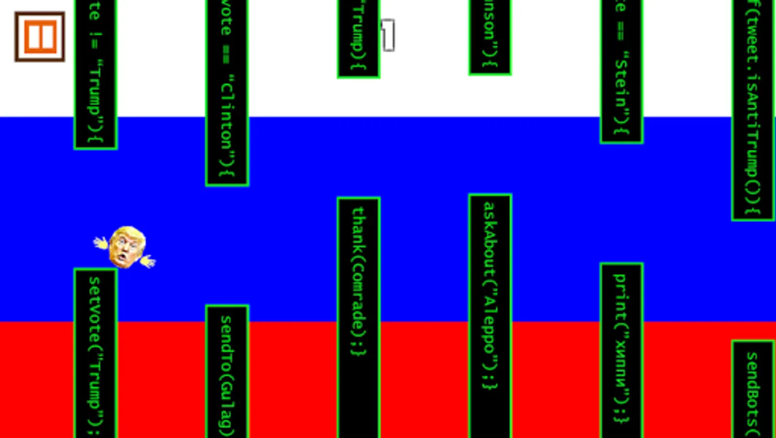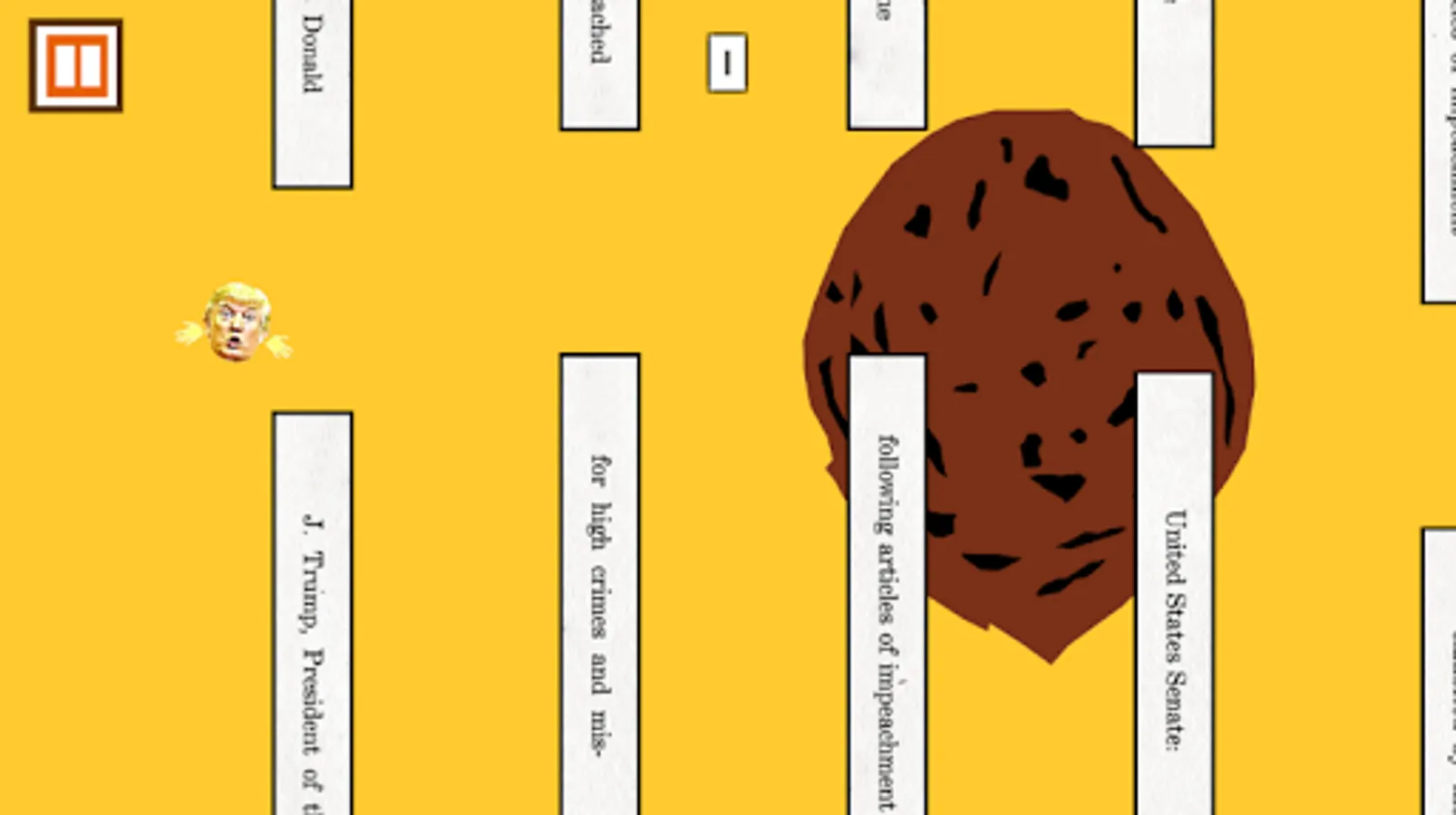 Take flight as the POTUS through various levels representing his struggles as he evades anything that could damage his approval rating, all while hearing classic Trumpism sound effects.