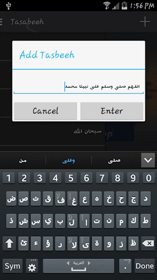 • Add your own Tasbeeh, Thikr, or Duaa to the Tasabeeh menu. You can add as many as you want.