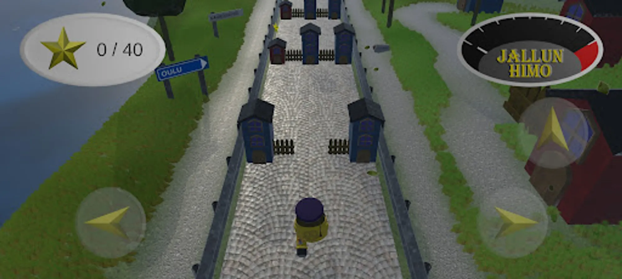 Guide the Opu student around Northern Finland, collecting stars and avoiding obstacles. After every fifth jallu star, Jallu's lust grows and the game speeds up. After collecting every tenth star, you get a new jumpsuit badge for Opu!