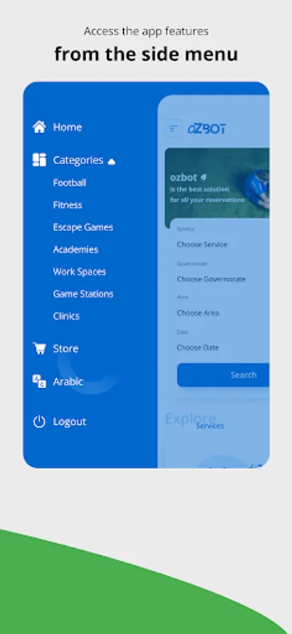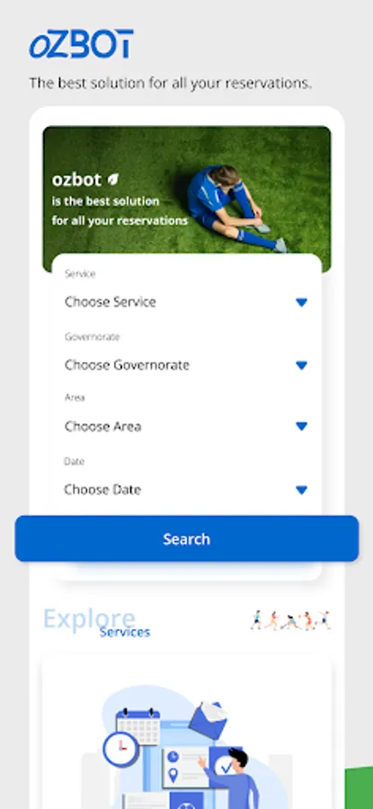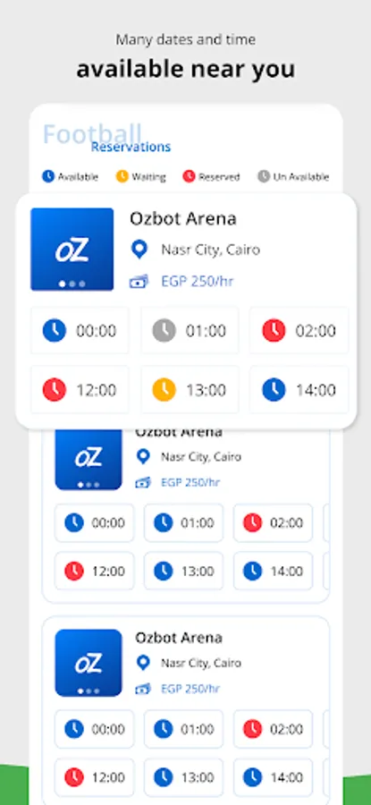 ozbot : is the First free booking system in Egypt , Helps you to book your football courts or Fitness sessions or Educational and sports academies , Game stations , Work spaces , clinics and events with simple clicks and pay with you wallet without any more Fees and safely