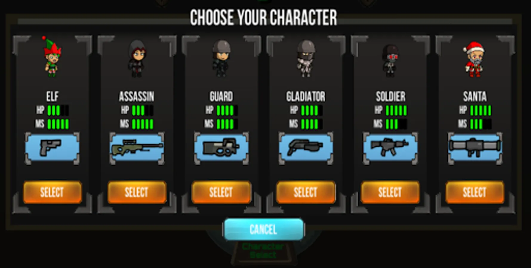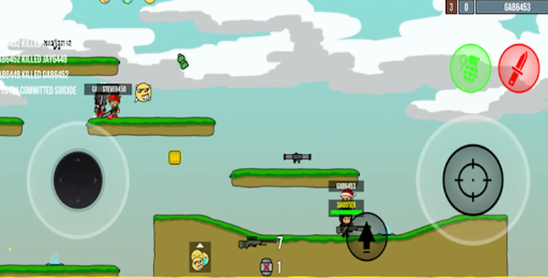 2 Dimensional multiplayer Battle Royale! Choose your player from six different types with different starting weapons and stats, Play against up to 8 opponents that are either players or AI in different 2D maps.