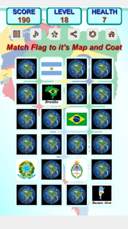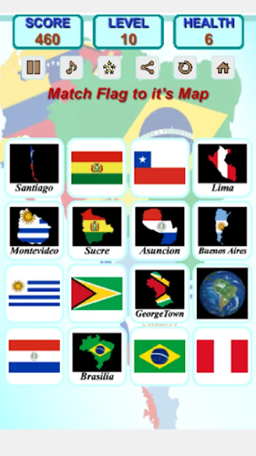 This game helps you to remember South America flags, maps, capitals.
