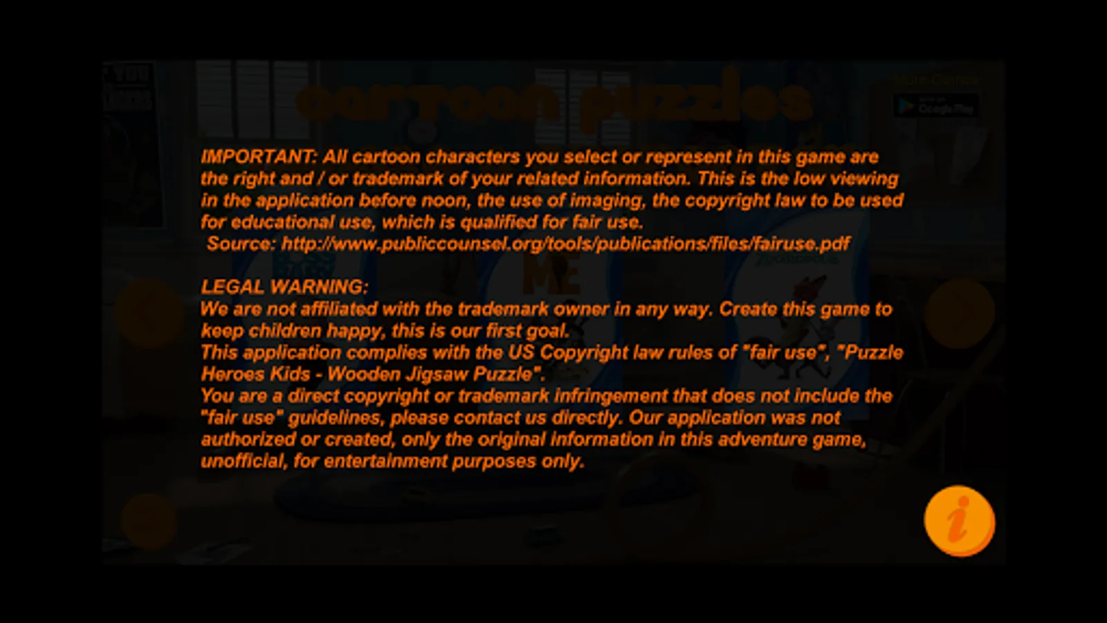 This application complies with the US Copyright law rules of "fair use", "Jigsaw Puzzles - Wooden Jigsaw Puzzle Cartoon Kids".