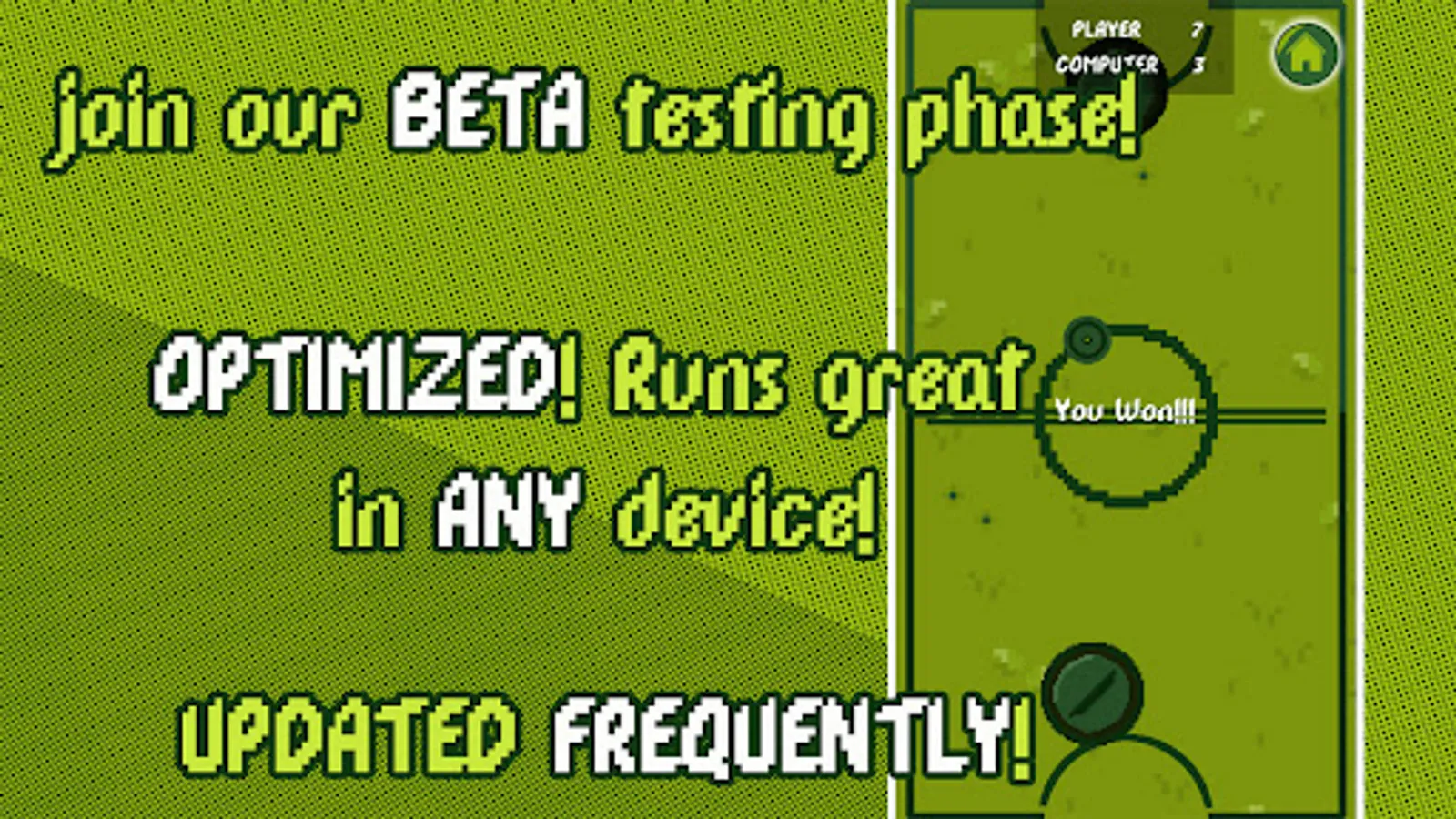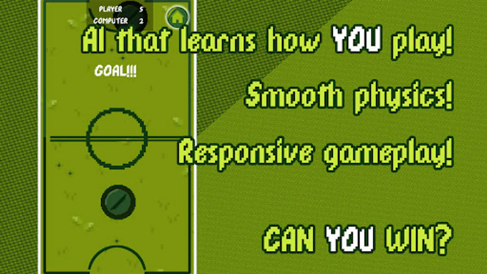 This game delivers you the classic experience of Air Hockey in style, with a Retro Pixel Art aesthetic and original score by 818 SUKI!