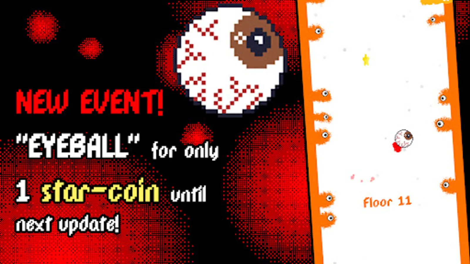 PRE-RELEASE EVENT: The character "EYEBALL" has its price reduced to only 1 star-coin until the next major update! It's a THANK YOU gift to you for jumping into our game this early!