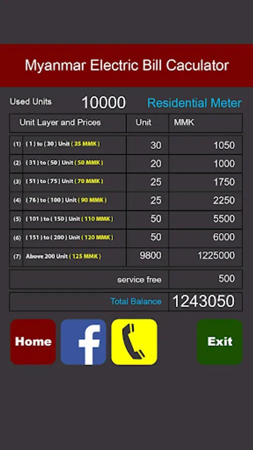 Myanmar Electric Bill Calculat