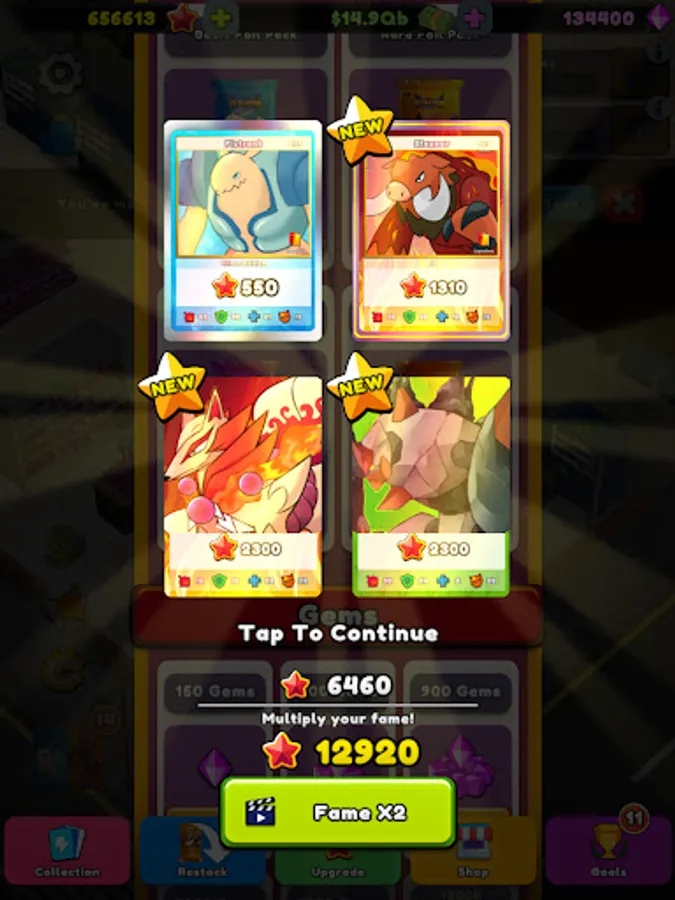 If you like idle and tapping games, you will enjoy this casual card shop management game. Tap on the customer button faster to serve more customers and earn more revenue by selling card packs. For every 1000 packs sold, you get to open and add monster cards to your card collection! Be a card trader and collect all the rare cards in this collection games.