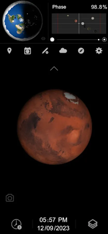 Once you start the application, you will be immediately informed about time, the current overhead position of the sun and moon, the current phase of the moon and more. With one touch you can rotate clockwise or counter clockwise to move time to the future or to the past and see where the sun/moon should be or how moon phase changes according to the change of time, or you can pick any date and time and get all of the relevant information of that date and time . Also you can set the app as a live wallpaper if you don't want to run the app every time, You can take a capture and save it on gallery or share it with a friend.