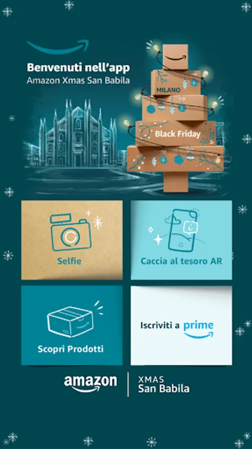 With the Xmas SanBabila app you can fully experience the visit experience designed for you by Amazon within the SanBabila space in Milan. You can participate in the augmented reality treasure hunt, enter the secret portals and share photos with your friends. You will also find all the products on display and you can buy them in one click.