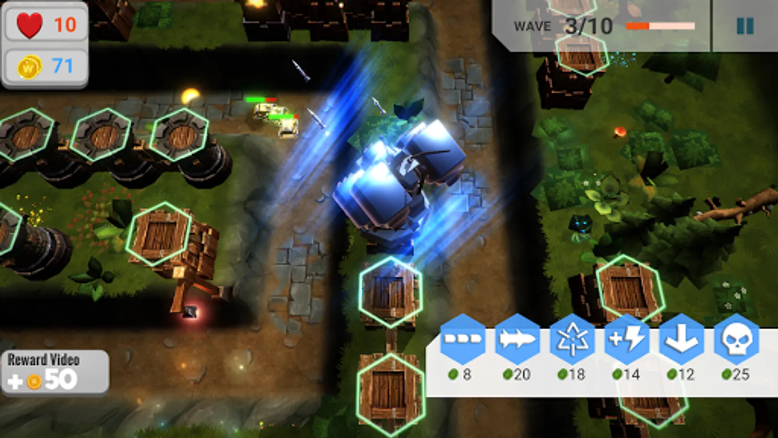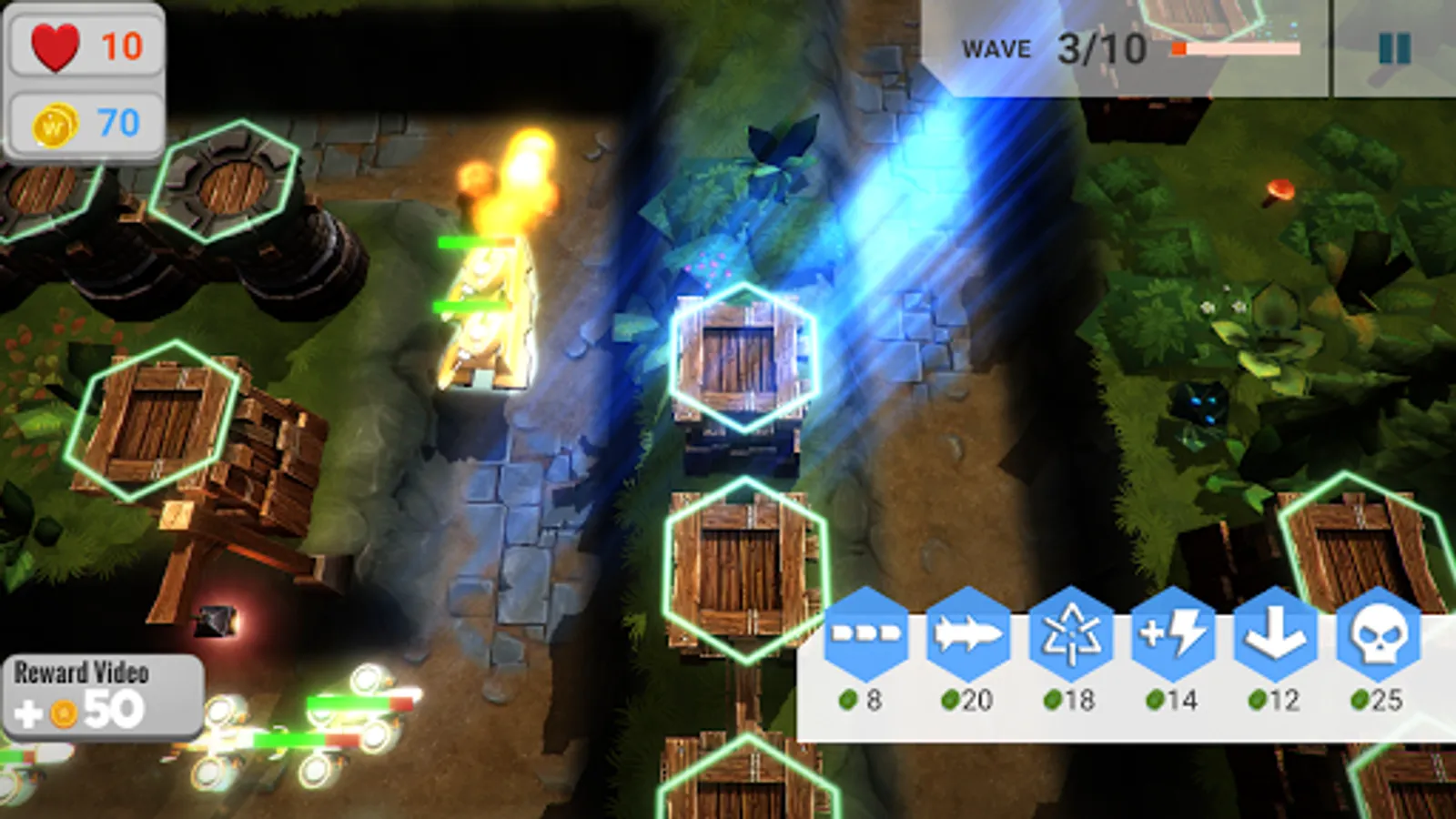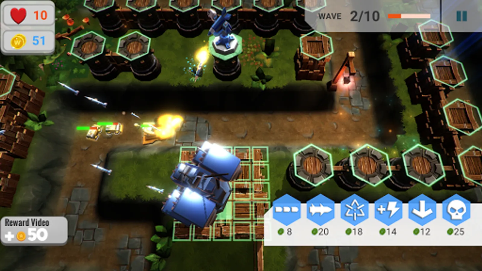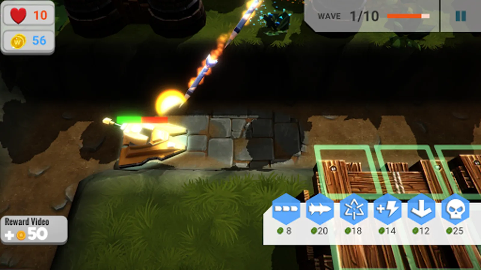 Tower defense is a strategy game in which your target is to protect your region by defending from the attacks of the enemy. You can protect your region from attackers by placing the right defense towers on their way or on their sides. You can have more money by watching an award-winning video, the stronger the defense towers, the better, but it will certainly cost you a lot. However, the amount you spend to raise your towers will be worth it, because enemies will rise and will be stronger as time goes by, so make sure you have enough money to upgrade your existing towers. Don't let these crazy enemies attack your pacifism of your kingdom, so make sure you plan your strategies and complete each level successfully.