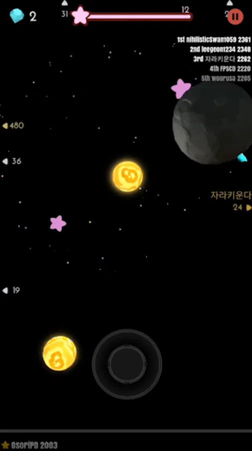 Let's make the fixed star grow bigger as much as you can! Your top score would be ranked on the board.