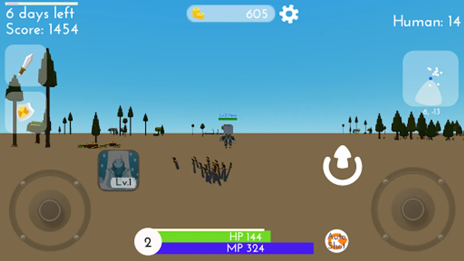 You have to survive in the villeage hunting zombies.