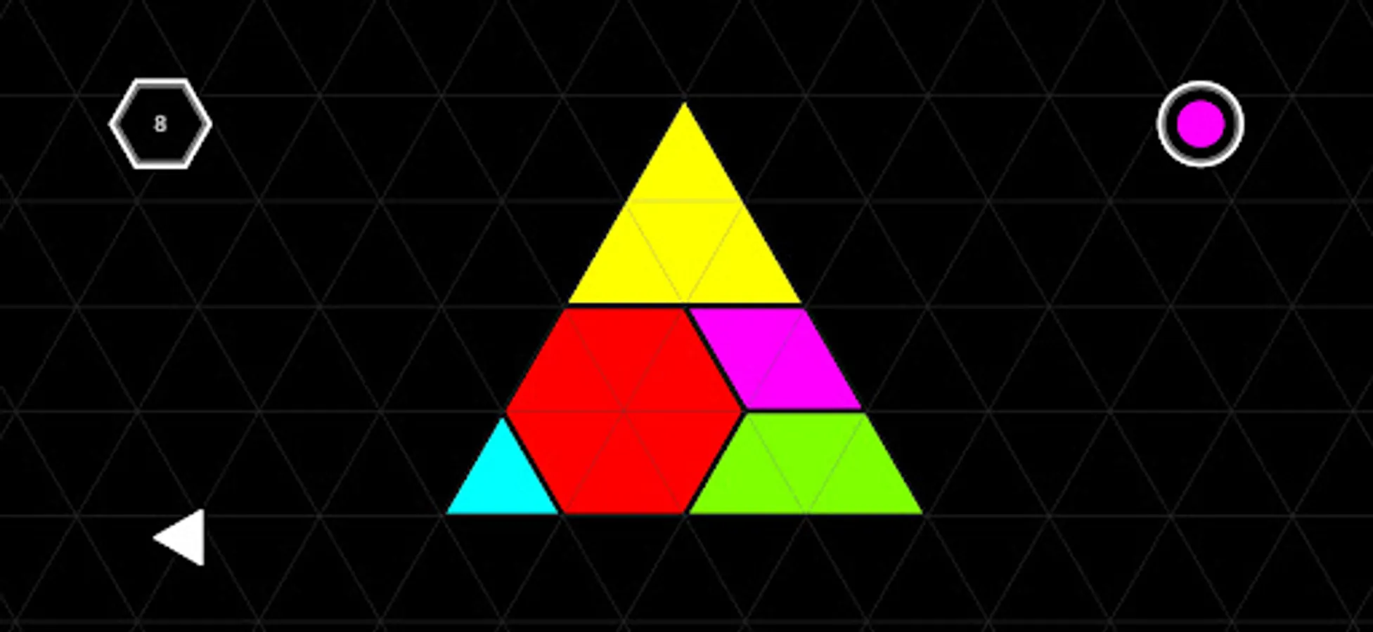 Arrange and combine triangles into basic shapes on a multi-level triangular grid, change color and round of shapes, and use mirrors.