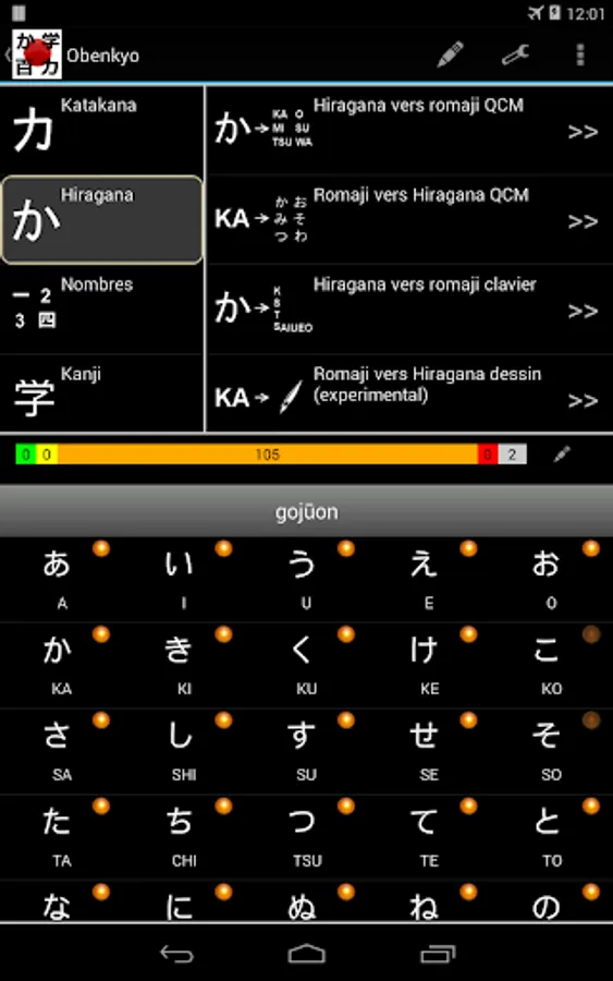 - Japanese syllabary :Katakana & Hiragana, with flash card, keyboard, or drawing recognition