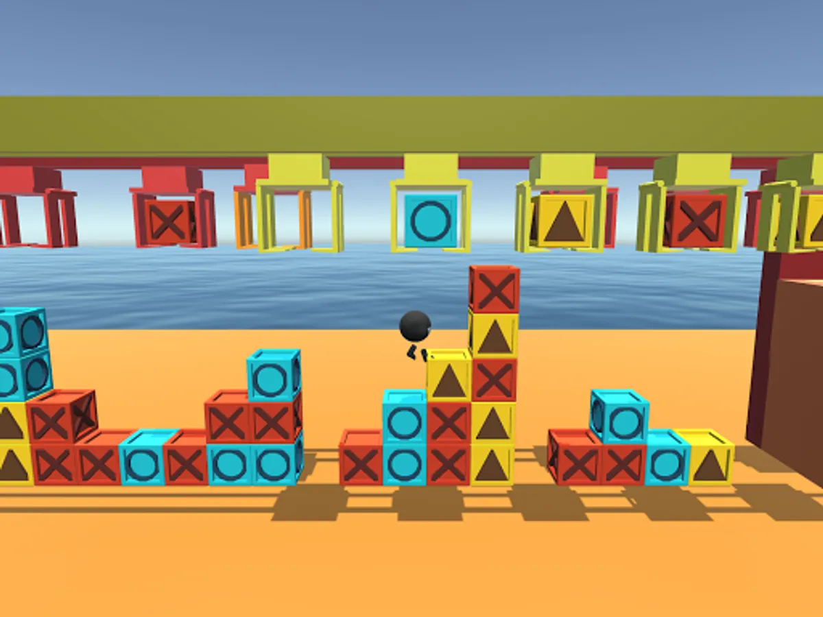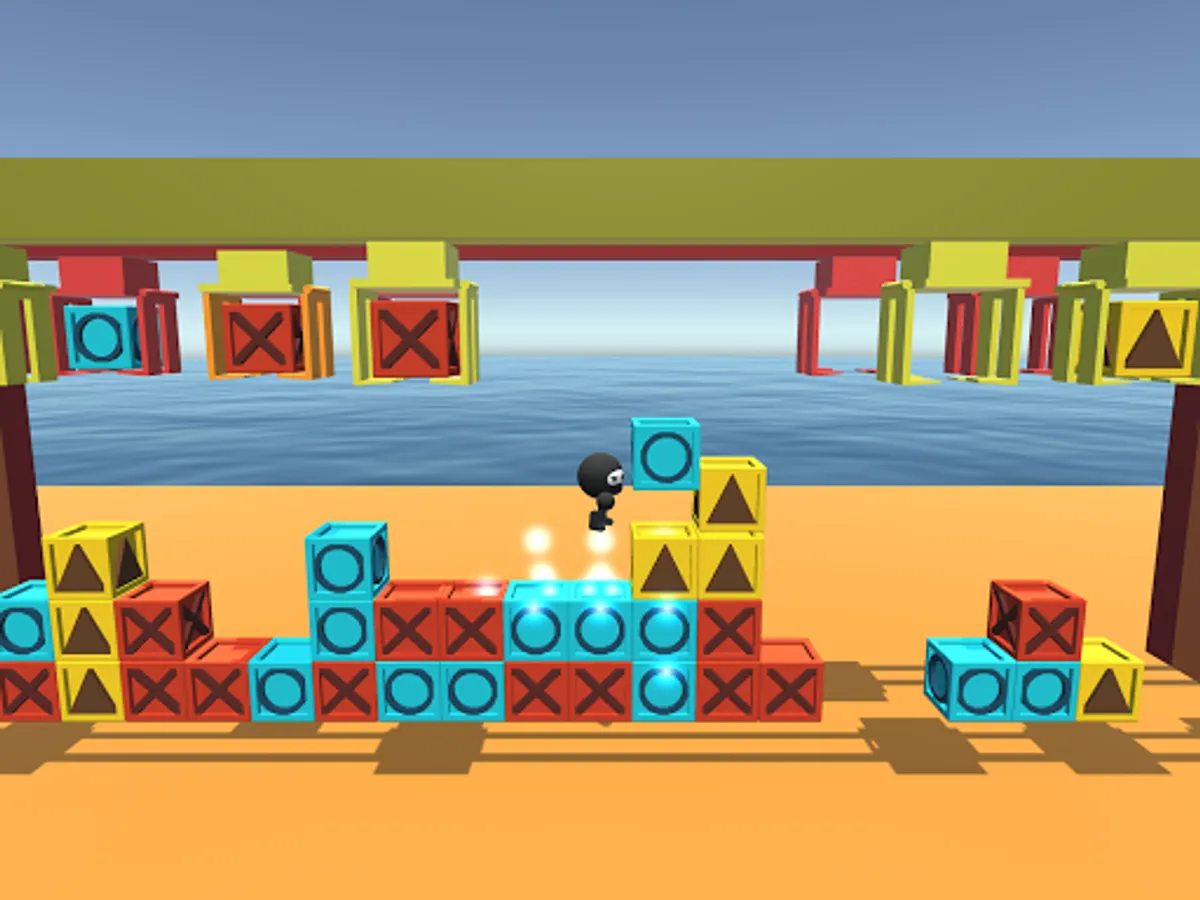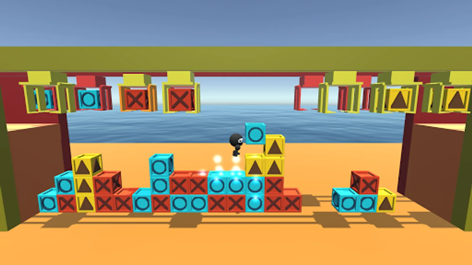 Control a ninja! Run, jump and kick boxes around. Move boxes of the same color together to remove them and to score. The game starts easy with boxes of three different colors. As you progress, the cranes will move faster and more colors might appear.