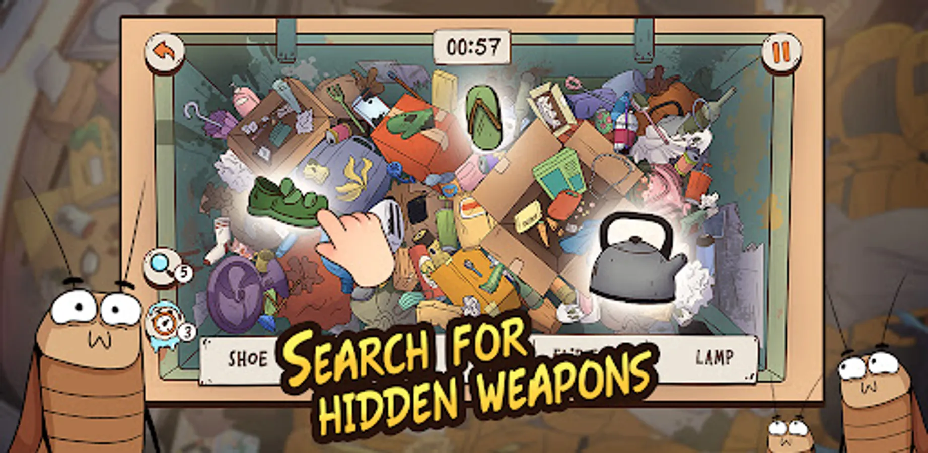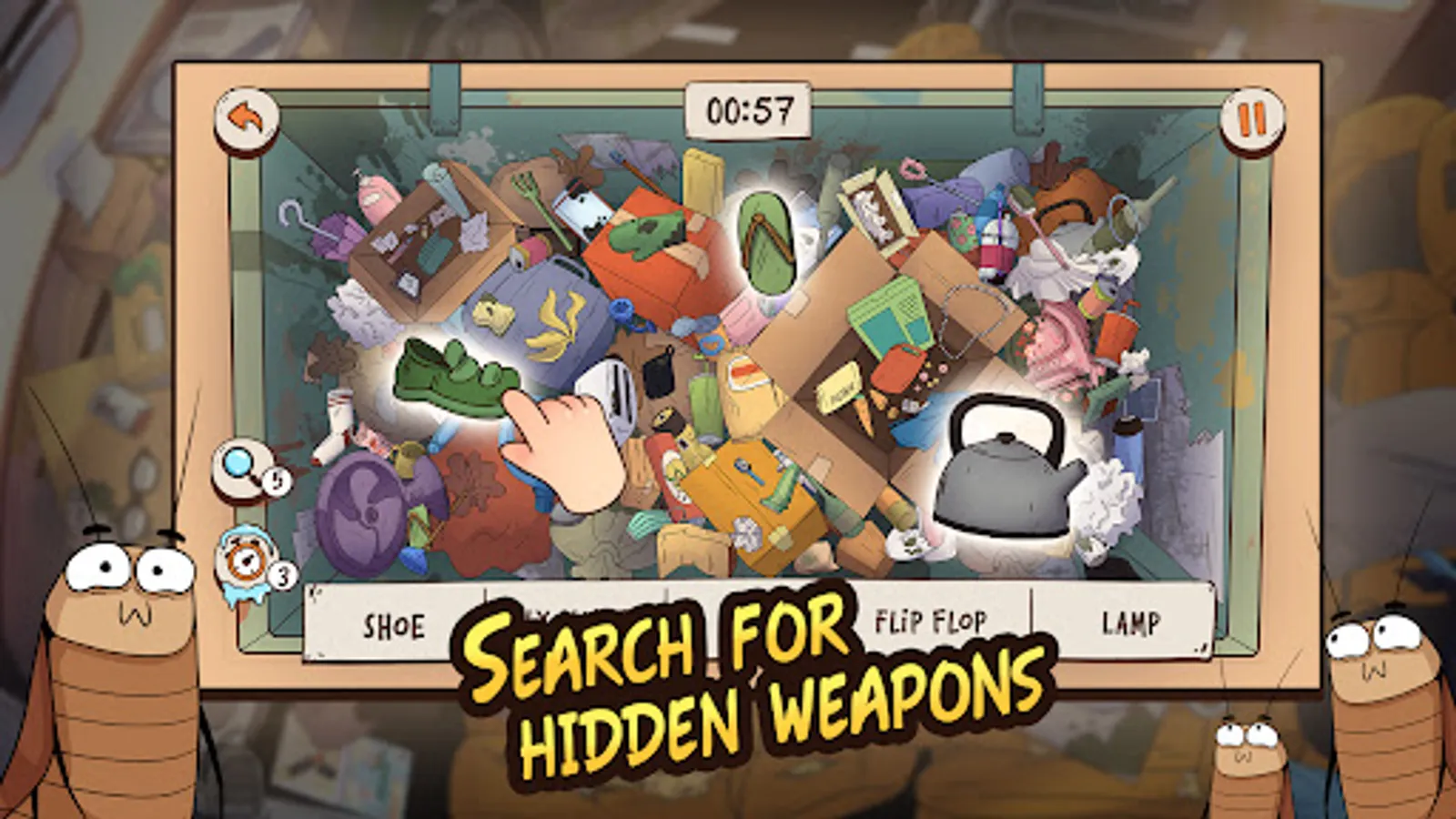 Oh, no! The cockroaches in your dumpster are planning to take over the world! Find the hidden weapons in each stage before the time runs out, then kill as many cockroaches as you can!