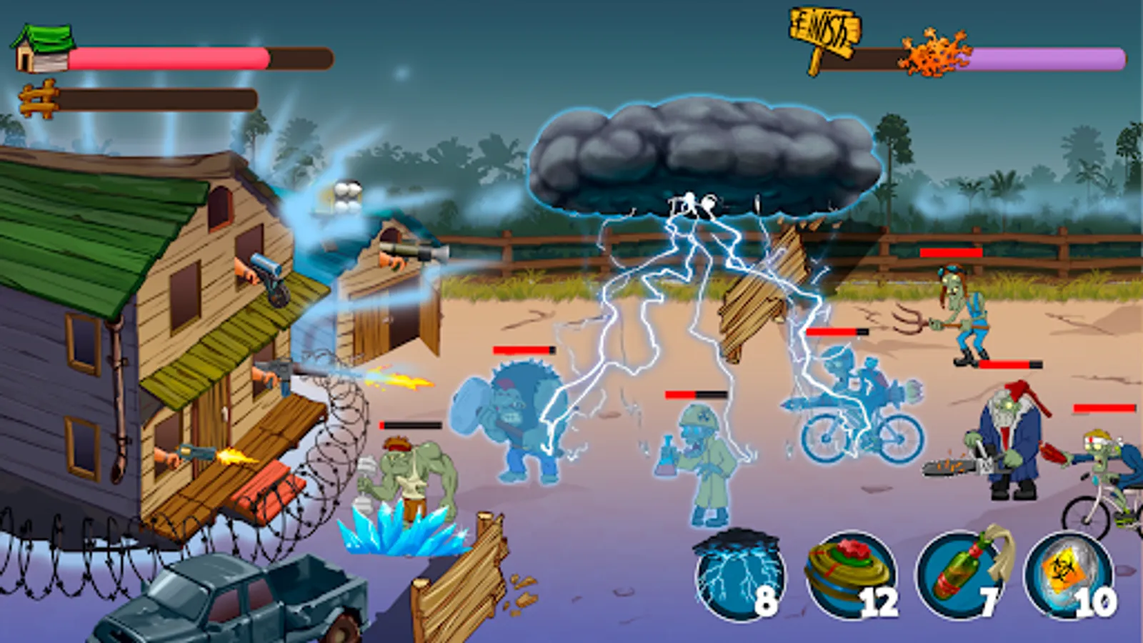 The gameplay is intuitive and typical. Just organize tower defense and shoot zombies.