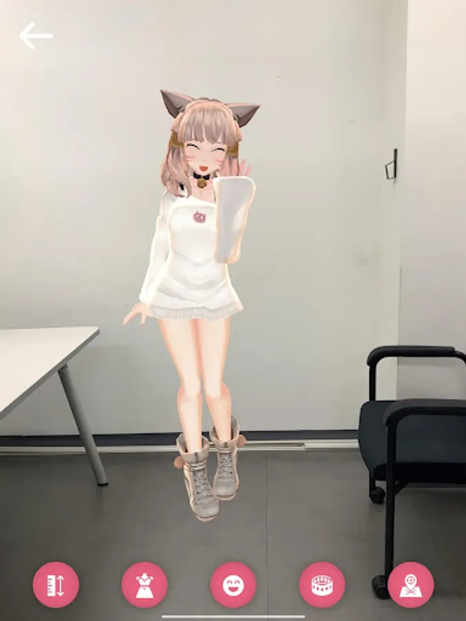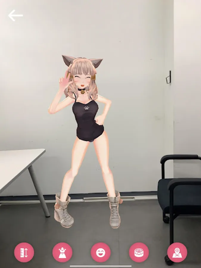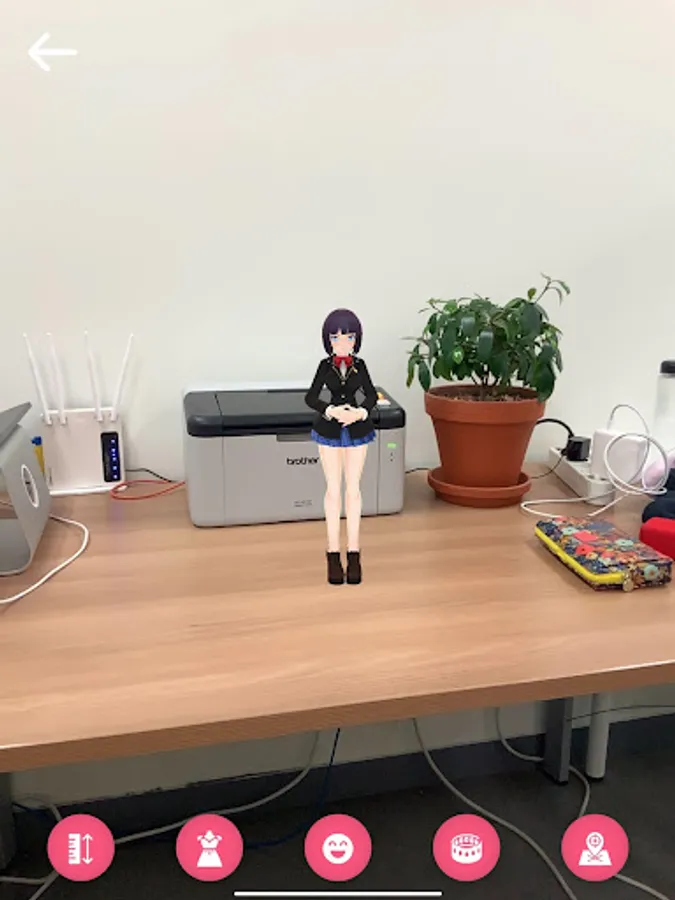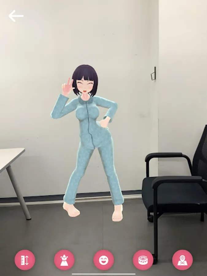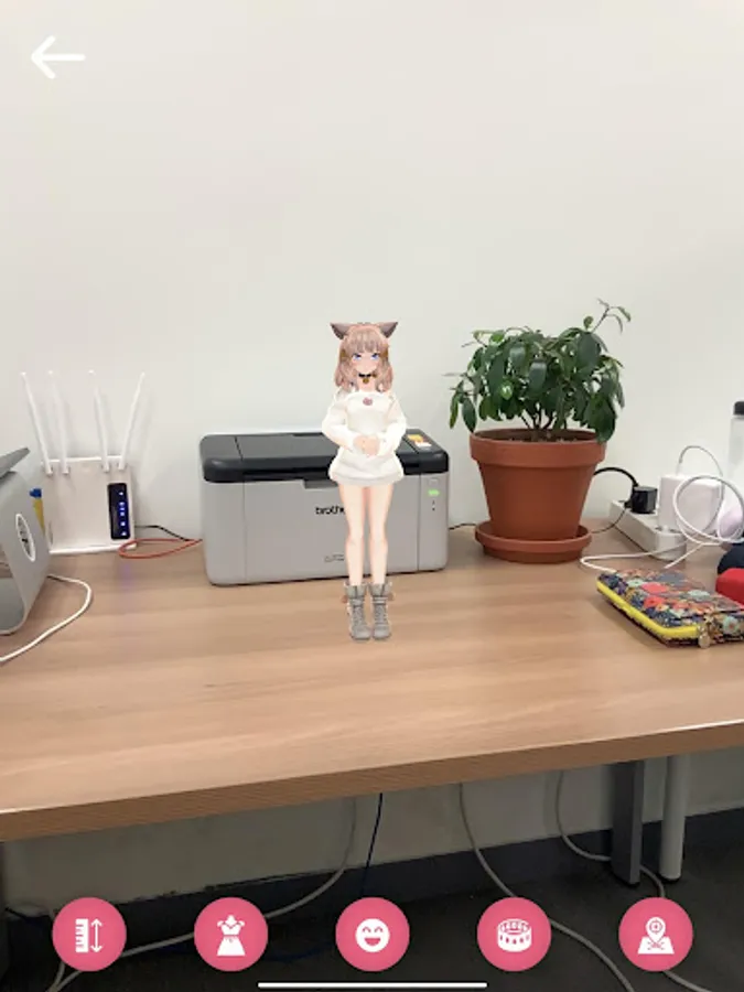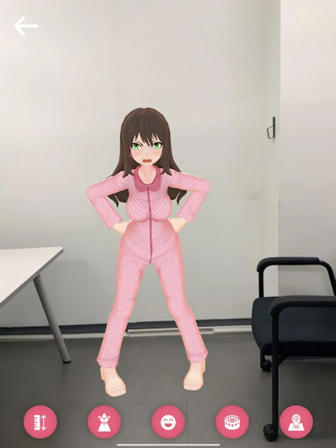 My AR Girlfriend is a game where you can meet cute girlfriends in Augmented Reality. Place your life-size girlfriend wherever you want. Shrink your girlfriend to a mini-size and place her on a table. Choose from different dresses, poses and facial expressions that match your interests.
