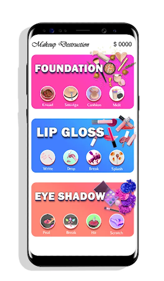 Tons of makeup sets to destroy from including makeup eye shadow palette, red lipstick show, liquid concealers, lash lift mascara, destroying eye liner art, eye shadows, foundations, creams, bronzers, lip liners, lip glosses and so much more using your fingers with amazing animations that will give you an oddly satisfying ASMR tingling sensation in your brain.
