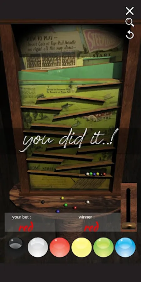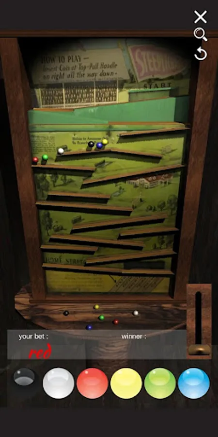 lift the lever to raise the balls, then watch them race down to the finish line.