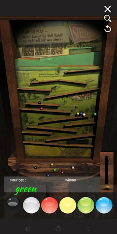 It contains 6 multi-colored balls (Black,White,Blue,Red,Yellow and Green) try to predict the finish order of these 6 colored balls as they race down the track.