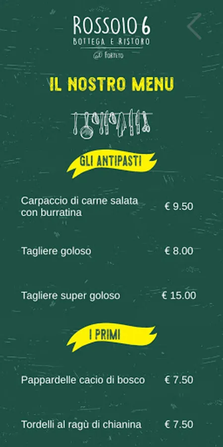 Frame the placemat of the Rossoio 6 restaurant to discover our menus.