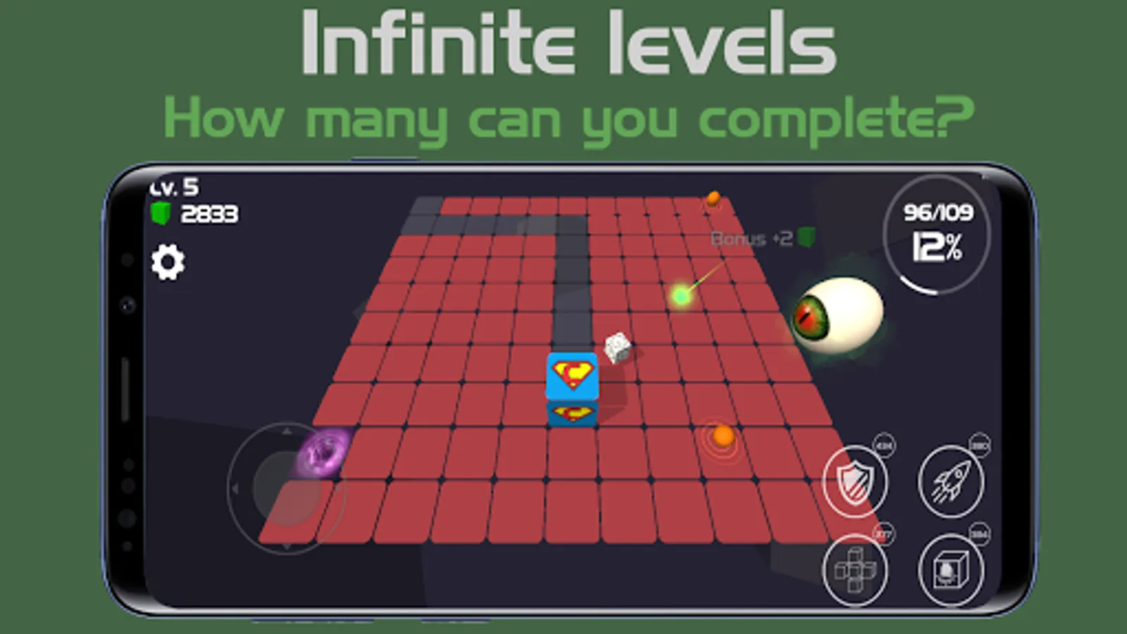 You control the cube 3D, and you have to destroy cube blocks. On each level you have to destroy at least a 90 percent of the cube blocks. To reach this quest you have to control the joystick to move on every direction. As you advance in the game, the levels will get bigger, so you will find giant maps as you reach new levels.